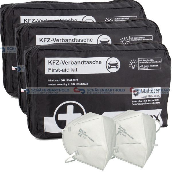 Petex 3x Verbandtasche Verbandstasche Erste Hilfe Verbandskasten PKW DIN13164 schwarz