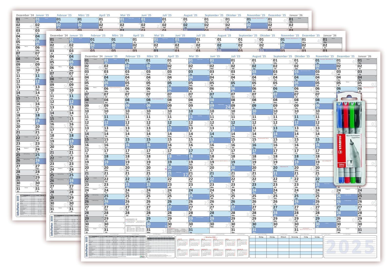 3x Wandkalender DIN A1 2025 nass abwischbar + Stifteset 84x59cm Kalender gerollt