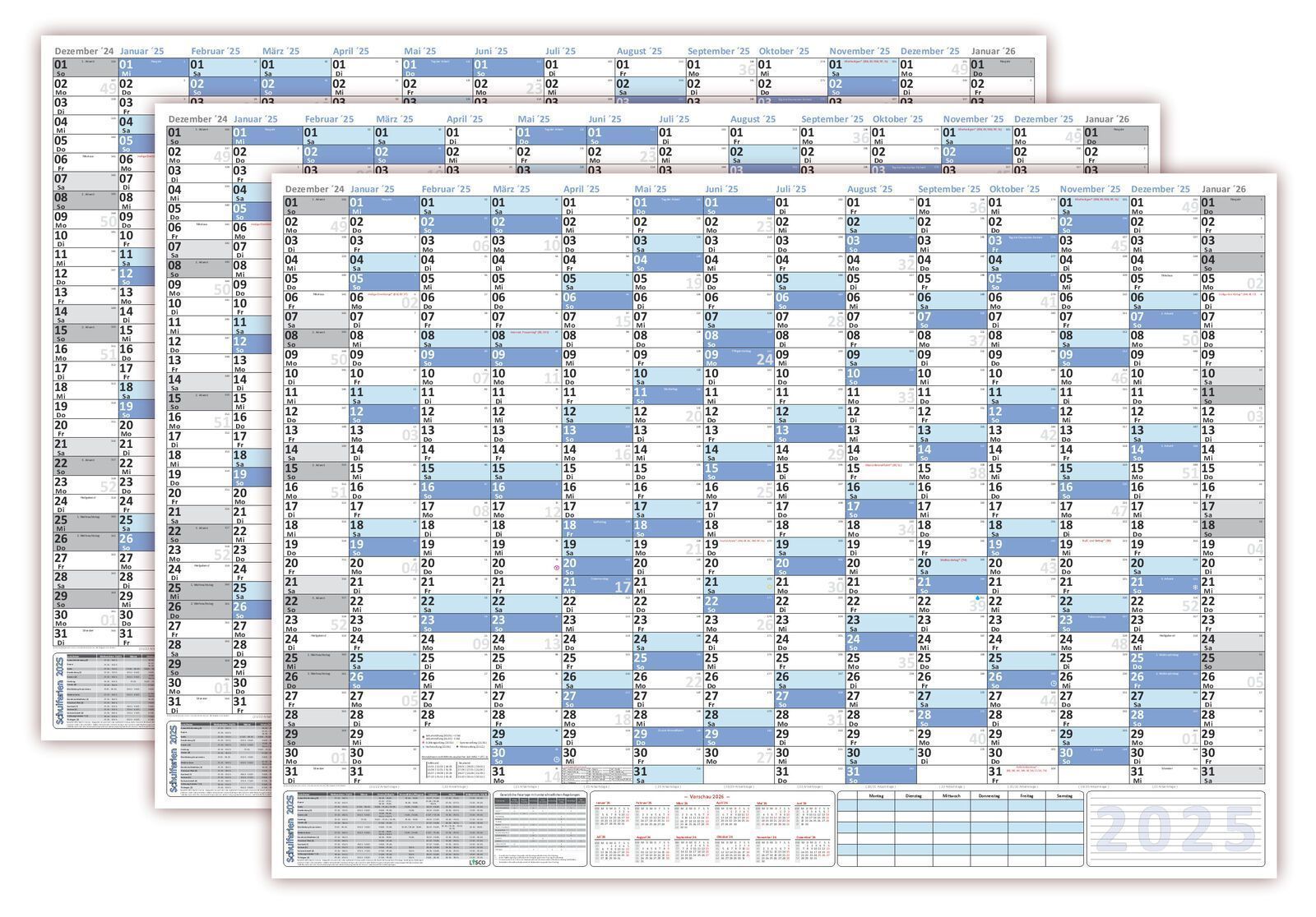 • 3 Stück Wandkalender DIN B1 2025 nass abwischbar 100x70cm Kalender gerollt