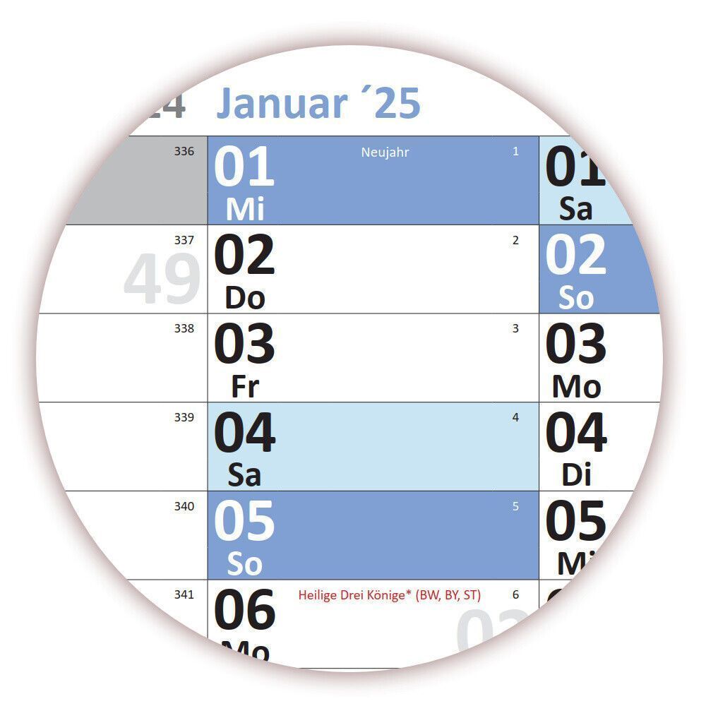• Wandkalender DIN B1 2025 nass abwischbar 100x70cm Kalender gerollt