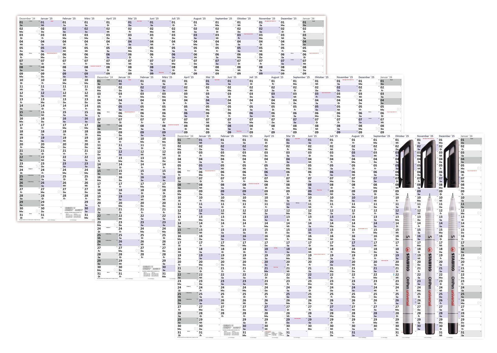 3x XXXL Wandkalender Special A0 2025 nass abwischbar 120x80cm + 3 Stifte