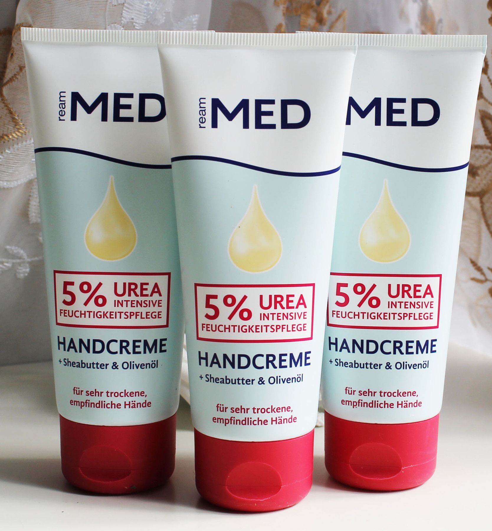 3x100ml Ream MED Handcreme intensiv Feuchtigkeitspflege 5% Urea Sheabutter Olive