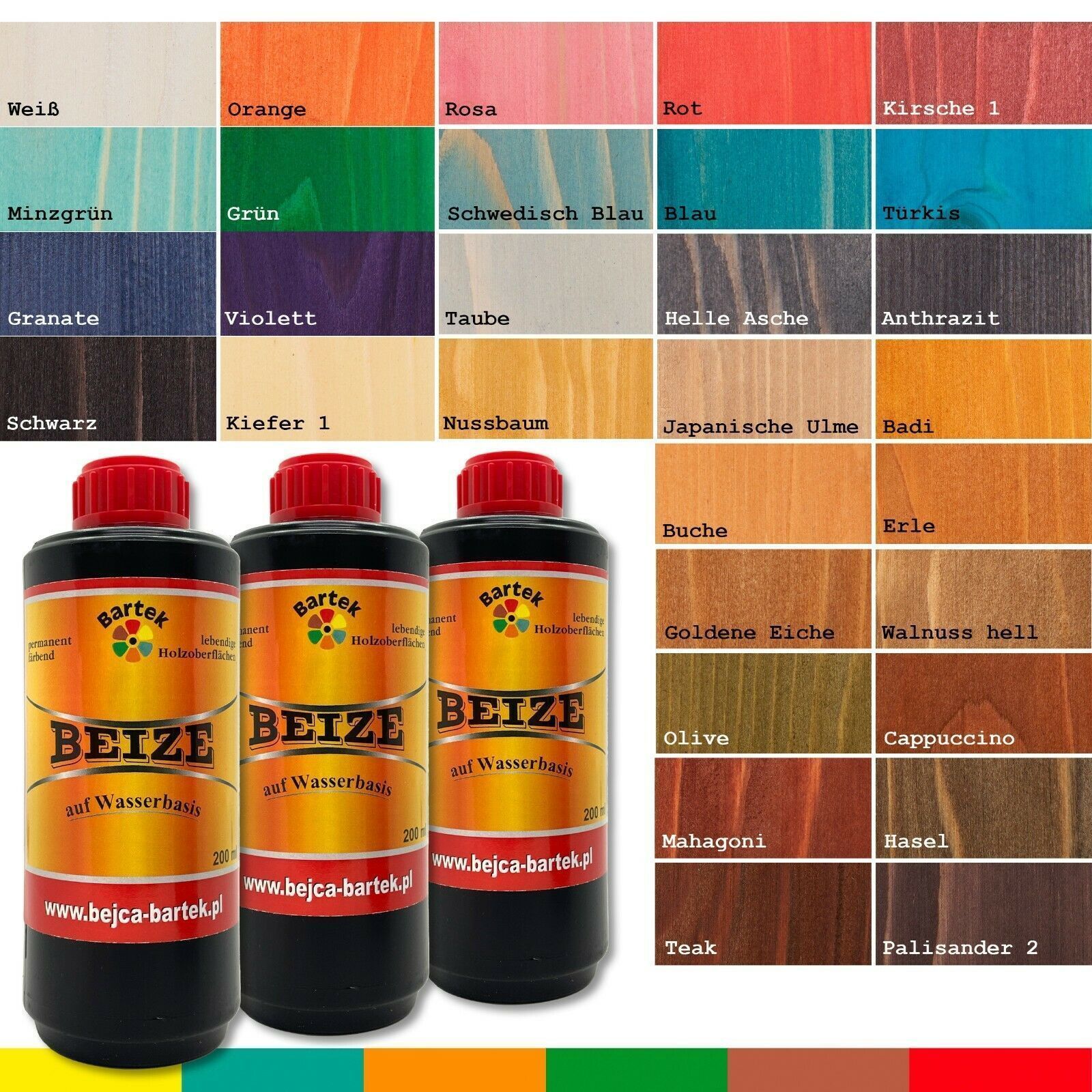 3x200ml Bartek Beize Wasserbeize Holzbeize Möbel Tischlerbeize 30 Farben Auswahl