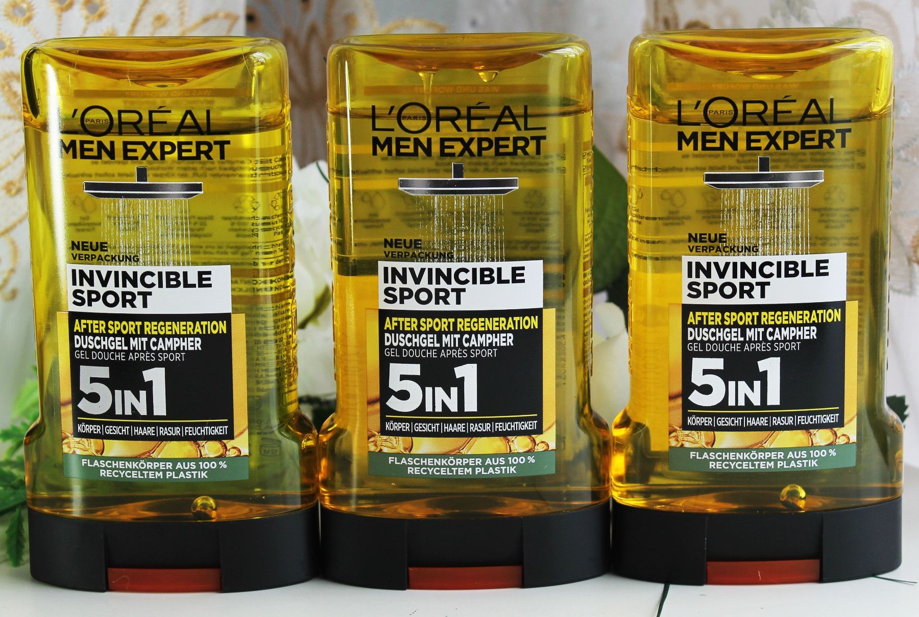 L´OREAL 3x250ml Loreal Men Expert Bade / Duschgel Invincible Sport mit Campher 5in1