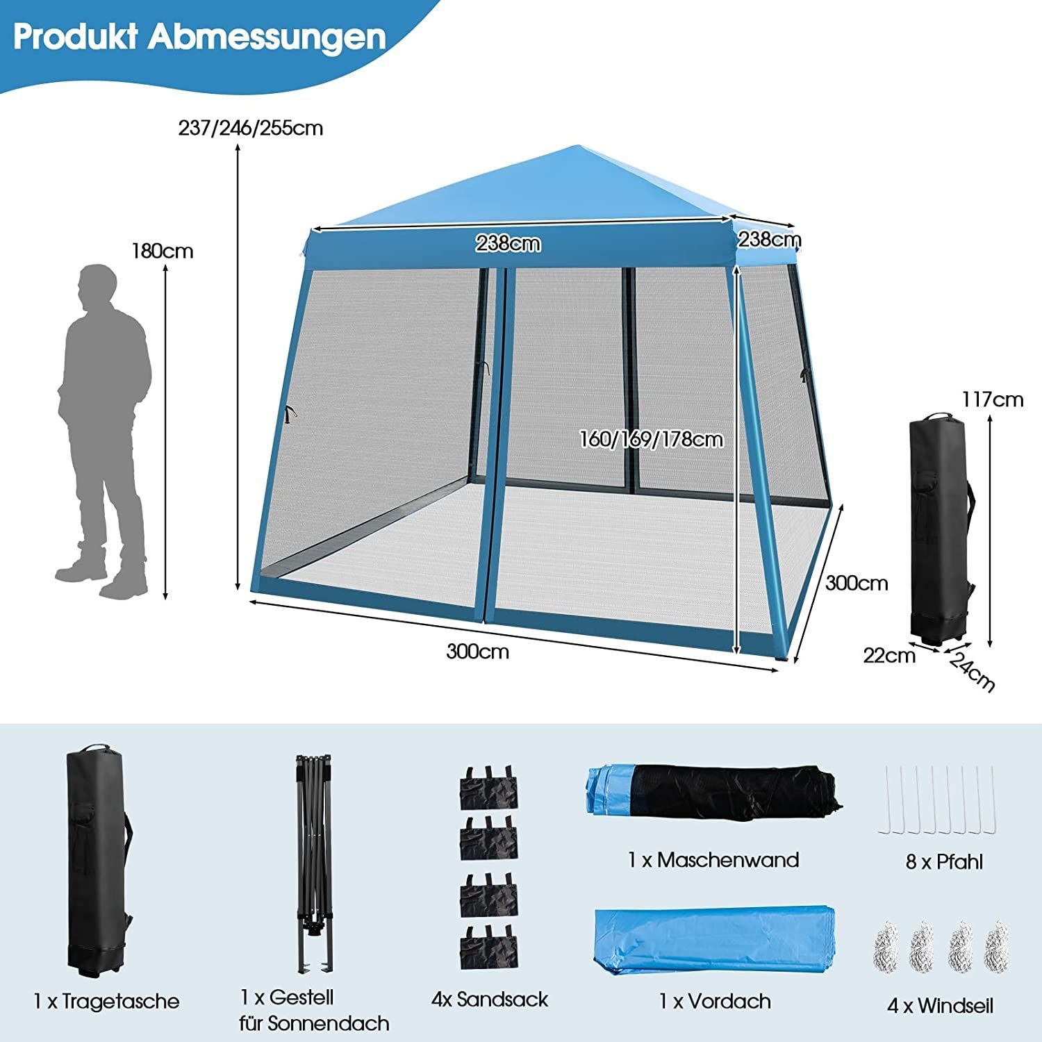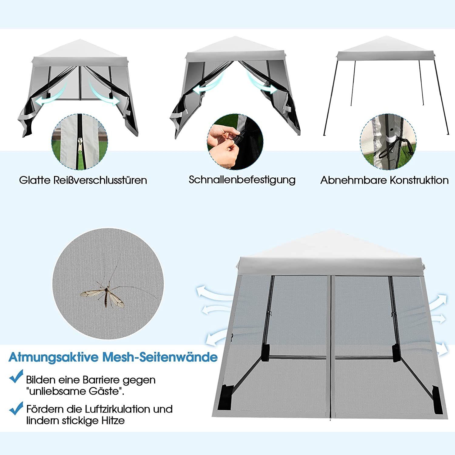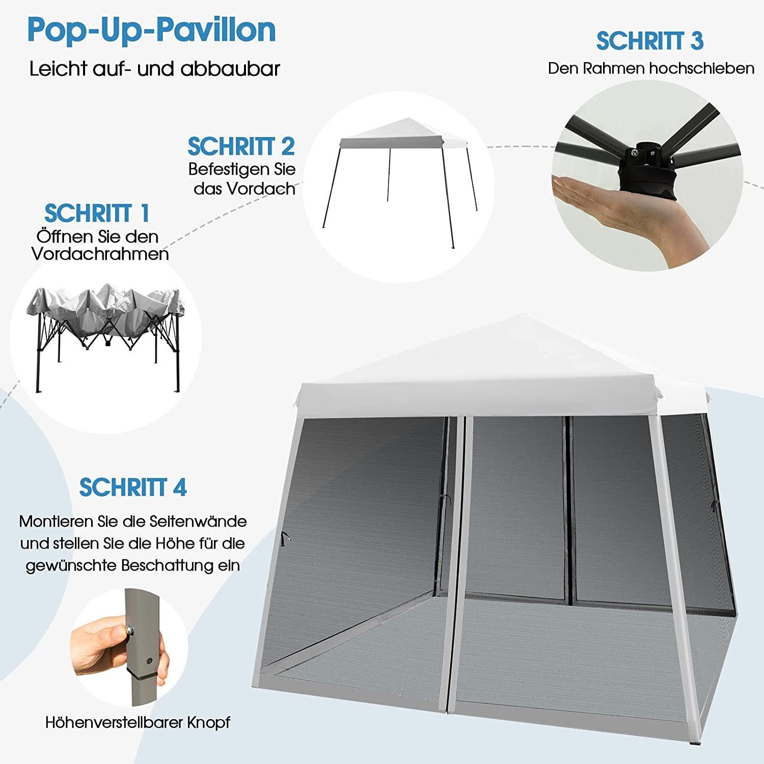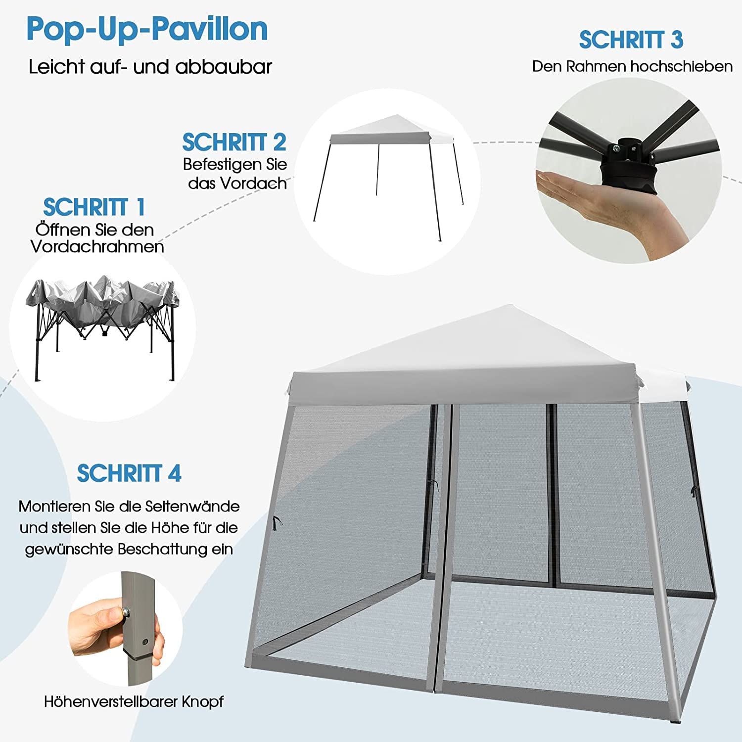 3x3 m Pop Up Pavillon mit Moskitonetz und Sandsäcke, Faltpavillon faltbar, Gartenzelt