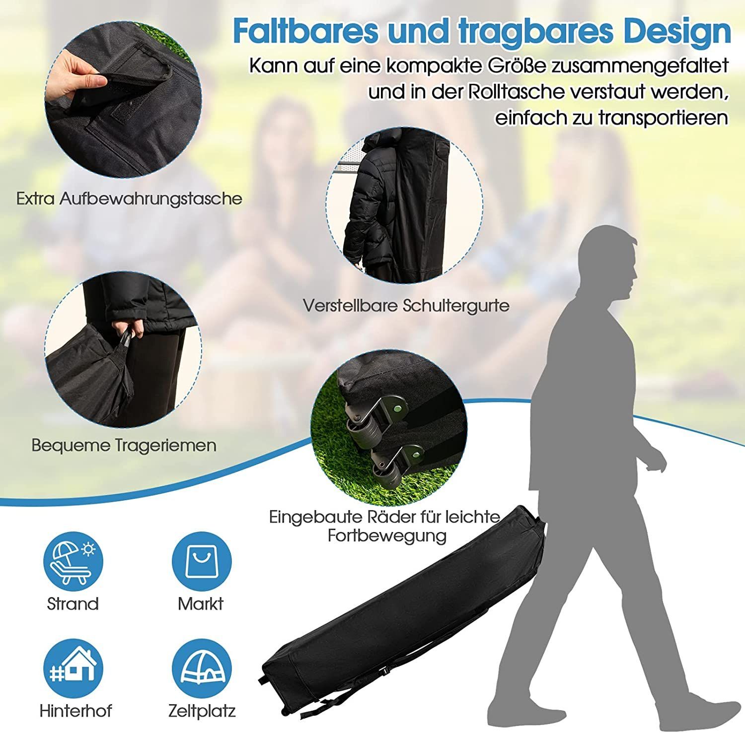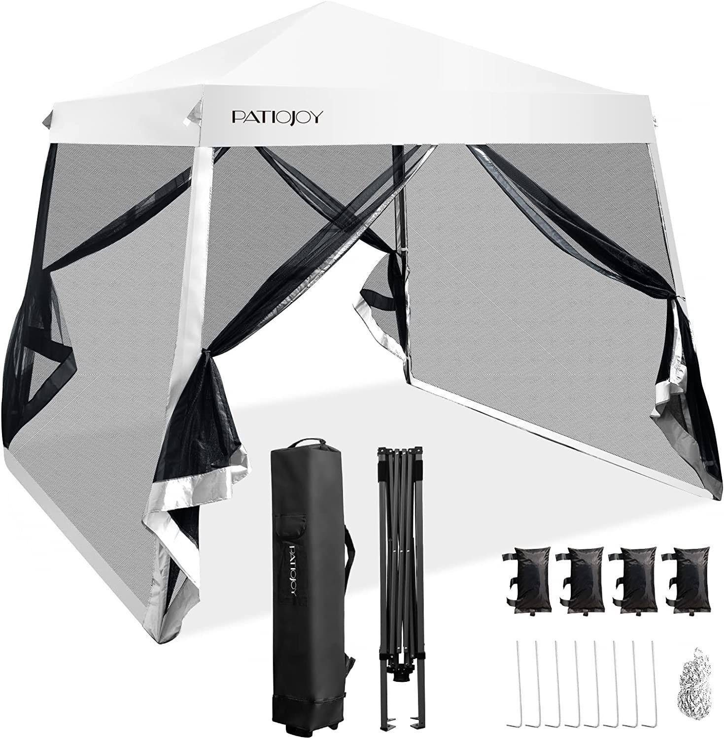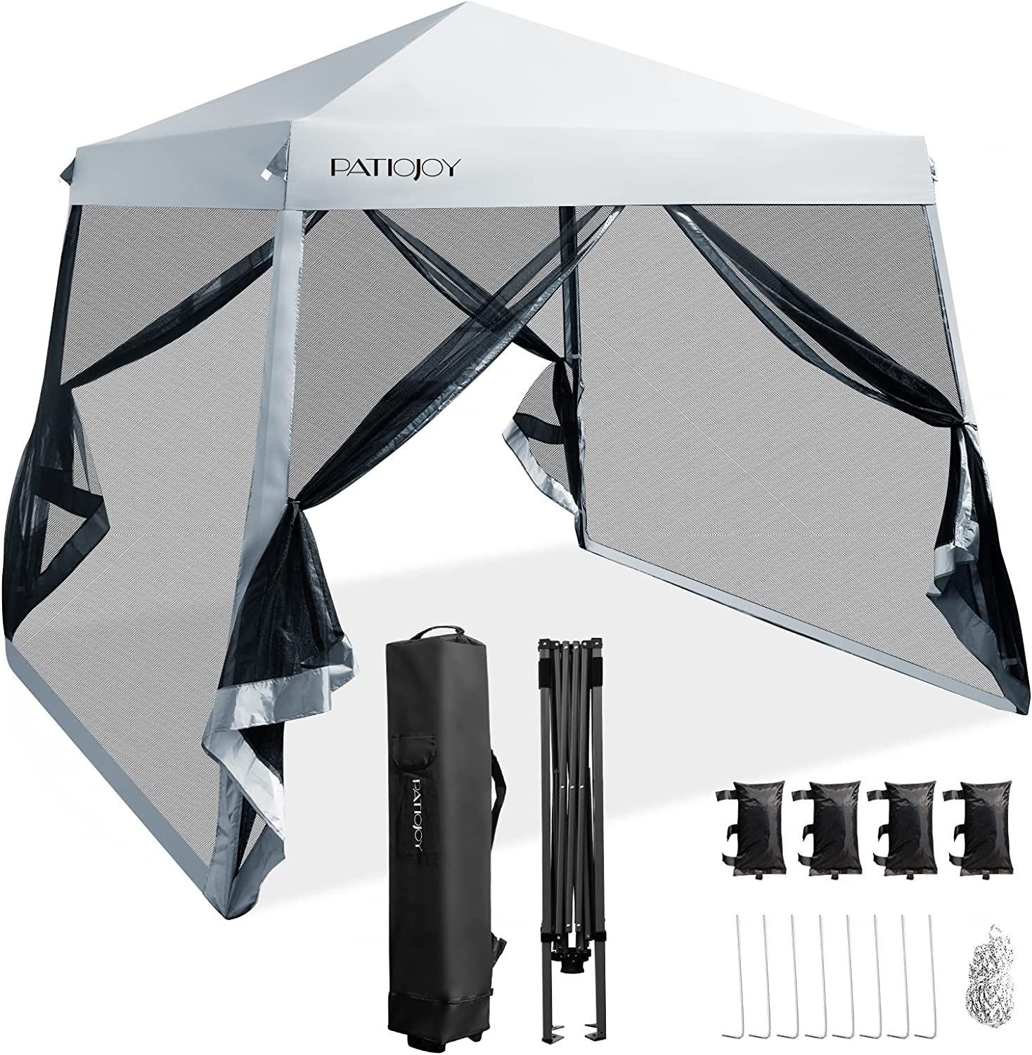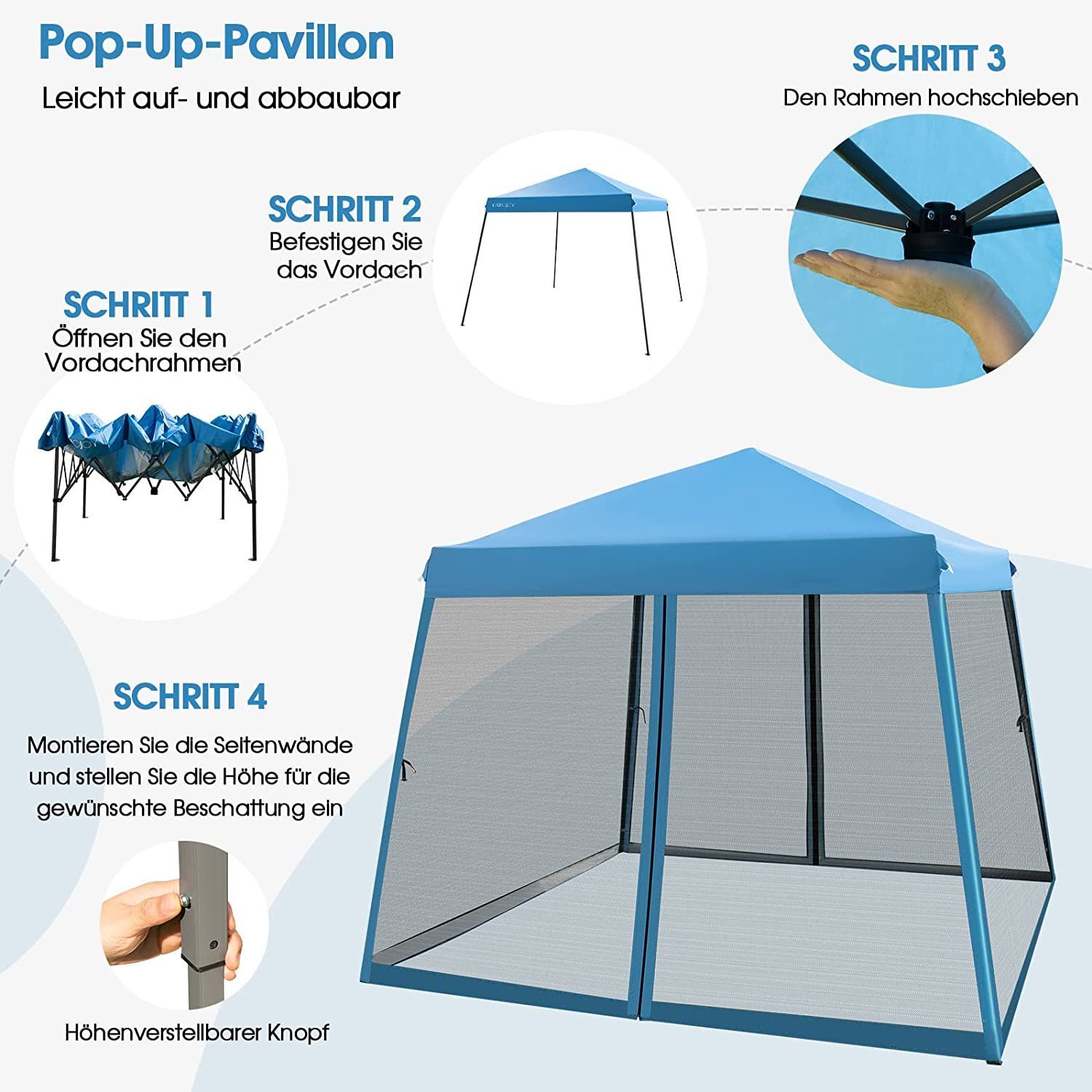3x3 m Pop Up Pavillon mit Moskitonetz und Sandsäcke, Faltpavillon faltbar, Gartenzelt