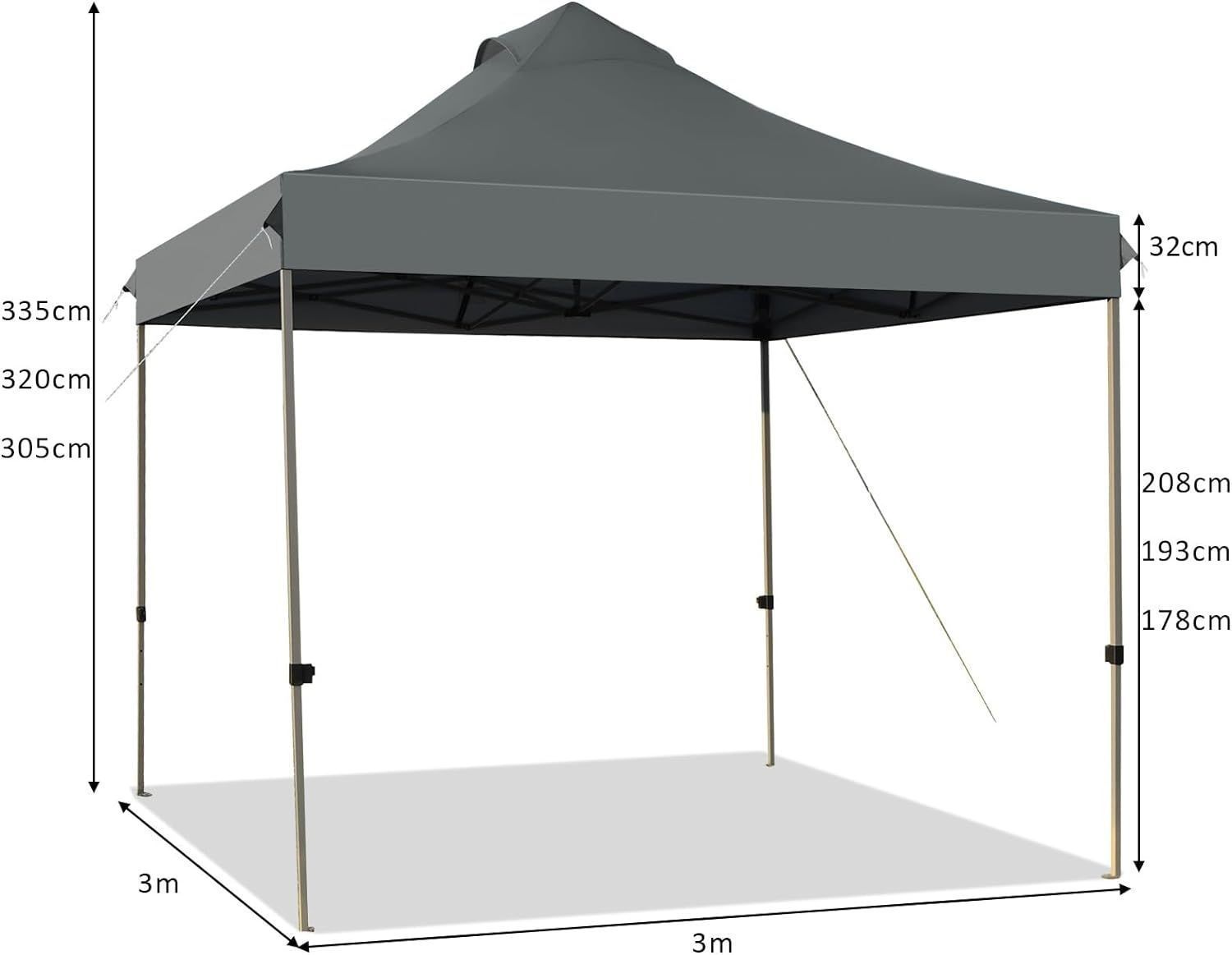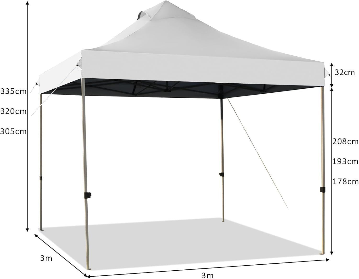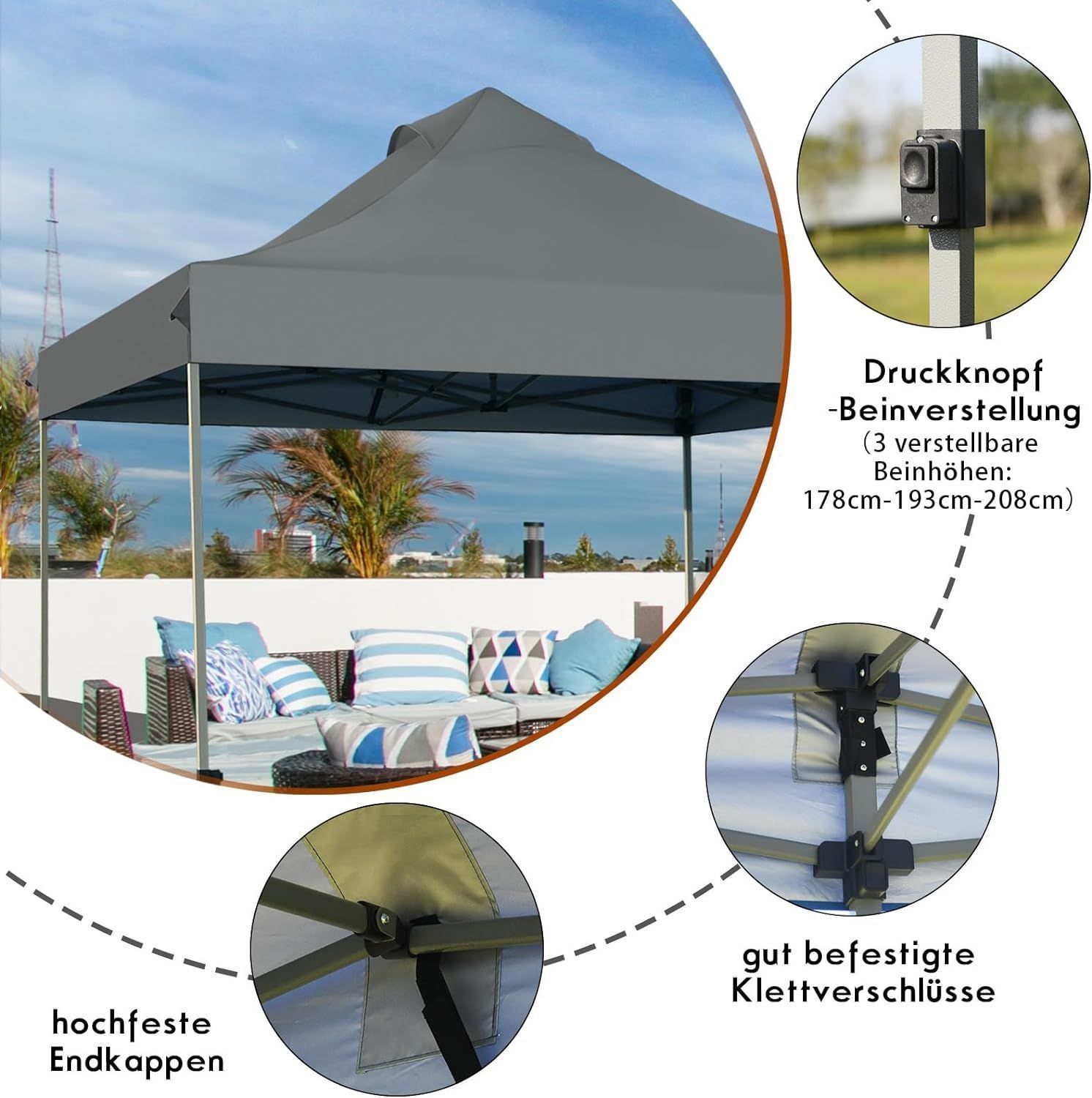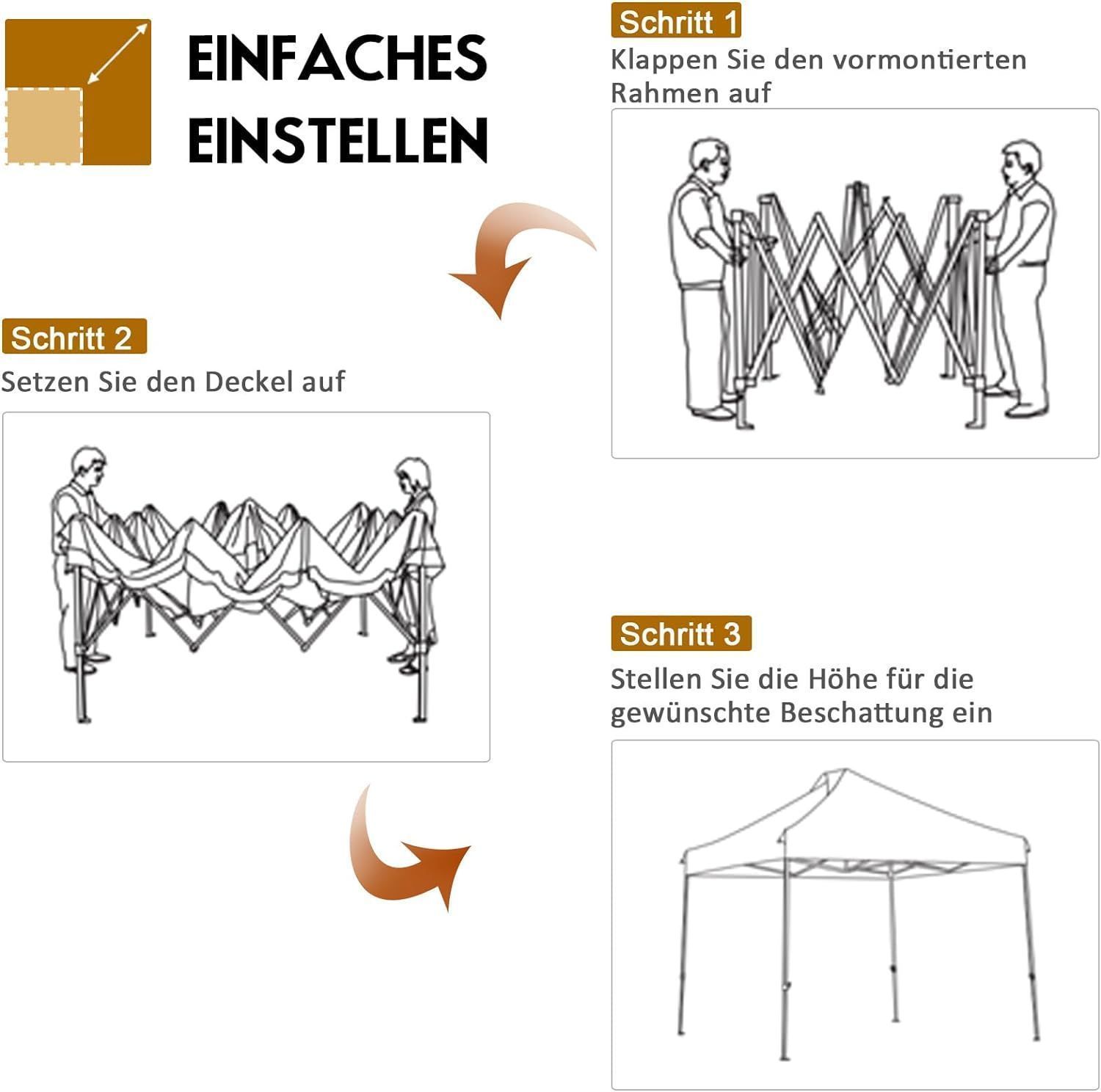 3x3m Pavillon, Faltpavillon, UV-Schutz 50 + , höhenverstellbarer Gartenpavillon