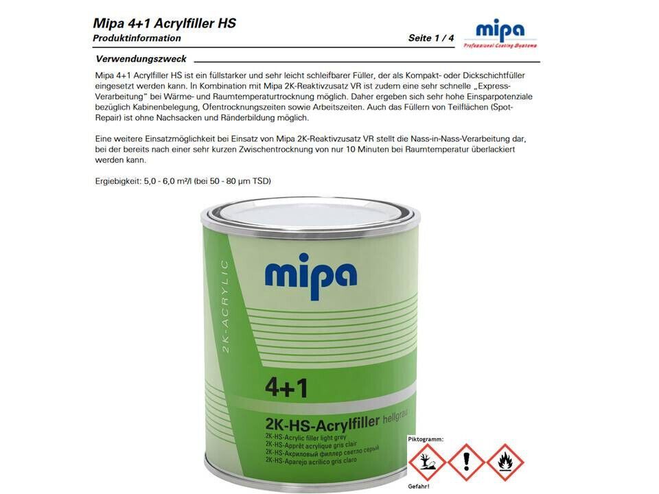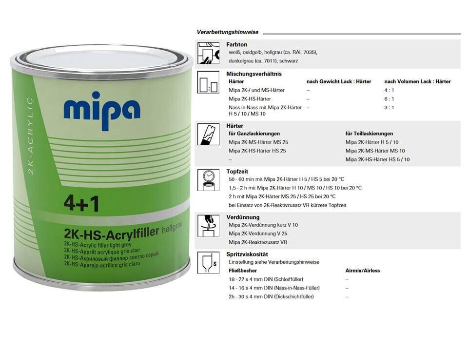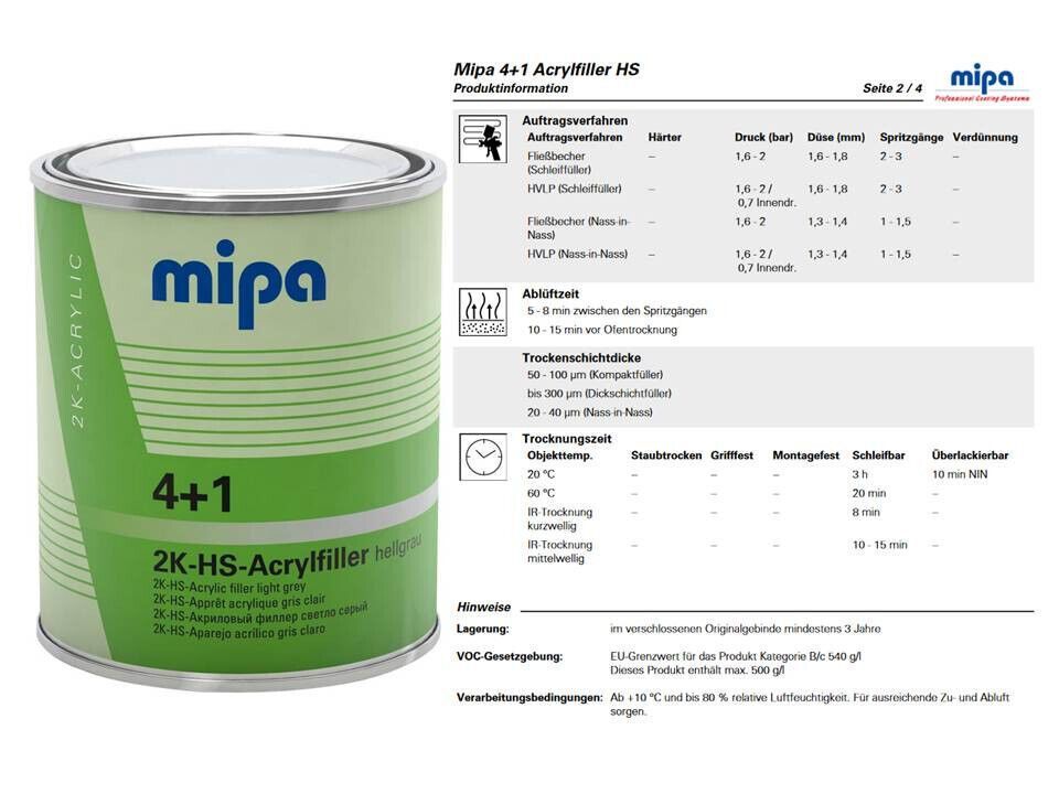 Mipa 4 + 1 Mipa 2K HS Acrylfiller hellgrau Füller Dickschichtfüller Autolack 1 Liter