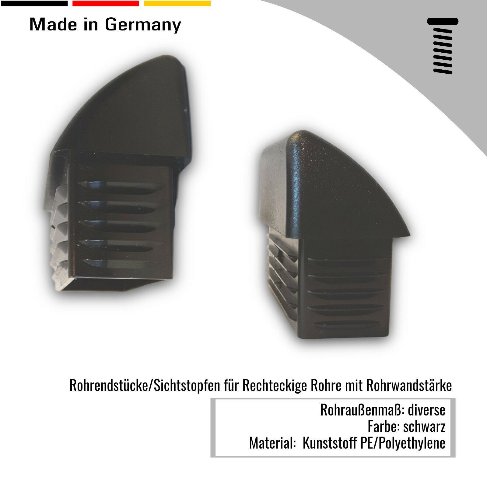 4 Stopfen Rohrendstücke mit Lamellen für vierkant Rohre, Kunststoff PE, Schwarz Das erste Maß gibt das Rohraußenmaß an Die Stopfen sind für eine Wandstärke von 1,5-2 mm geeignet Entdecken Sie auch unsere anderen Angebote Filzgleiter, Möbelfüße, Unterlegscheiben, und vieles mehr… Günstige Preise, sch