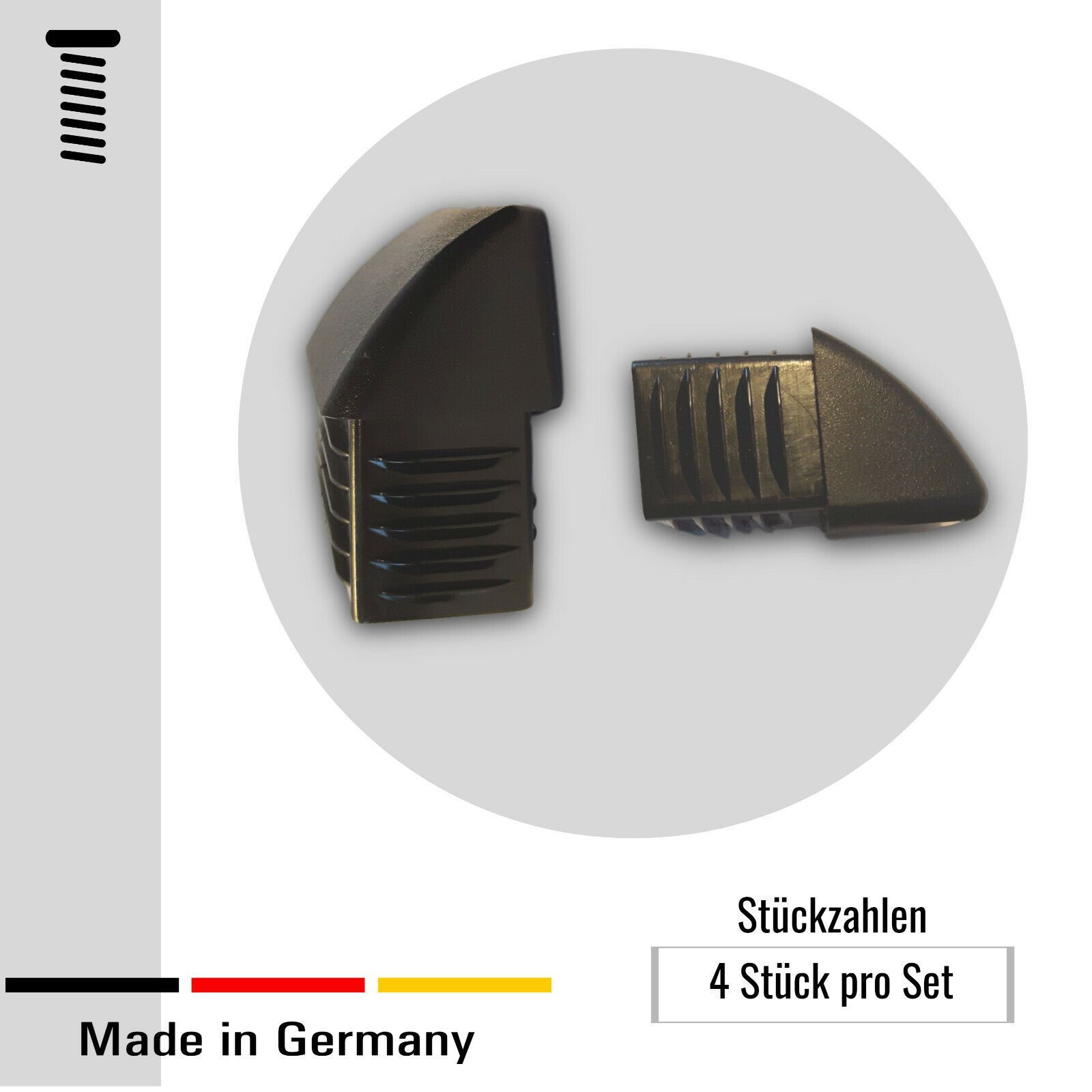 4 Abdeckstopfen/ Rohrendstücke mit Lamellen vierkant Rohre Kunststoff Schwarz