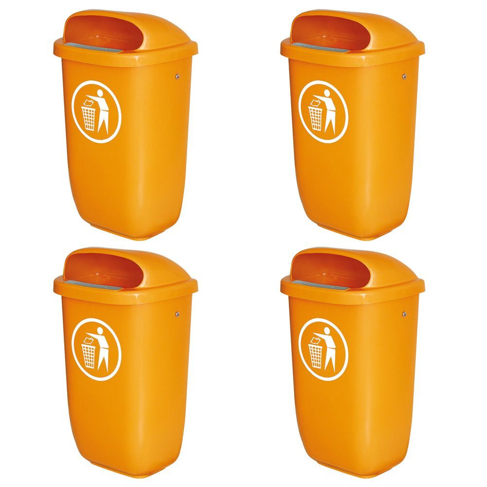 4 Abfallbehälter für den Außenbereich, Inhalt 50 Liter, nach DIN 30713, orange