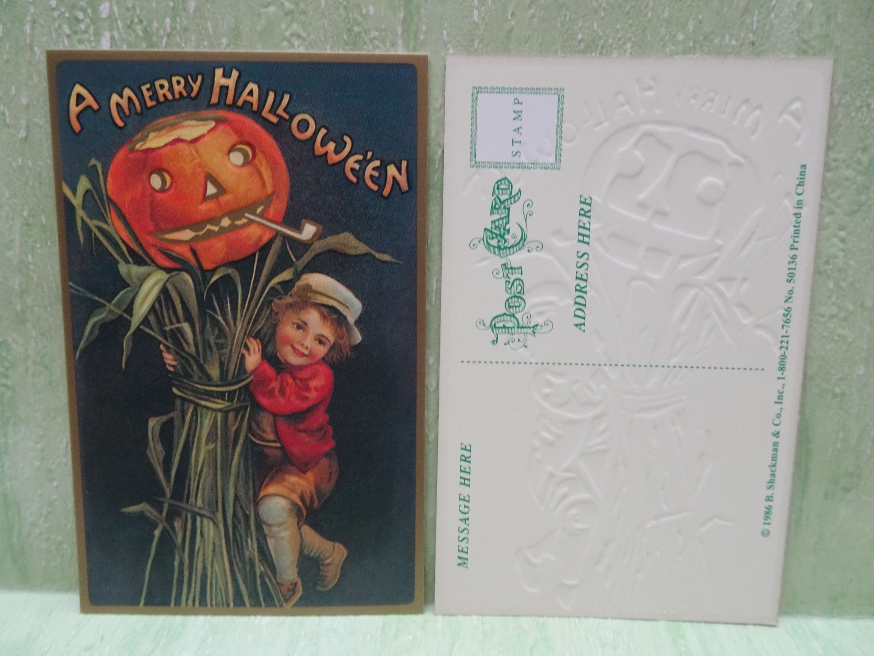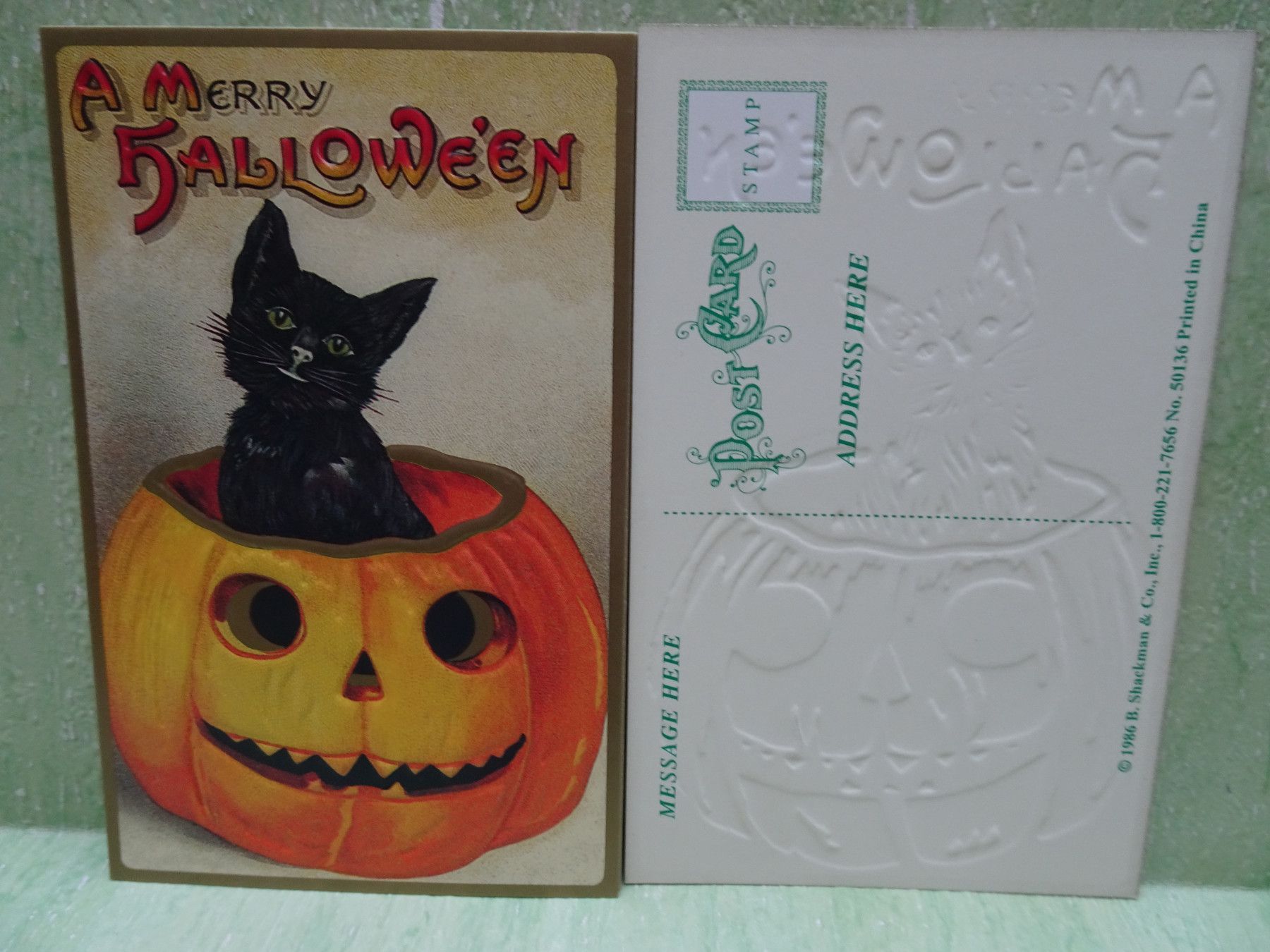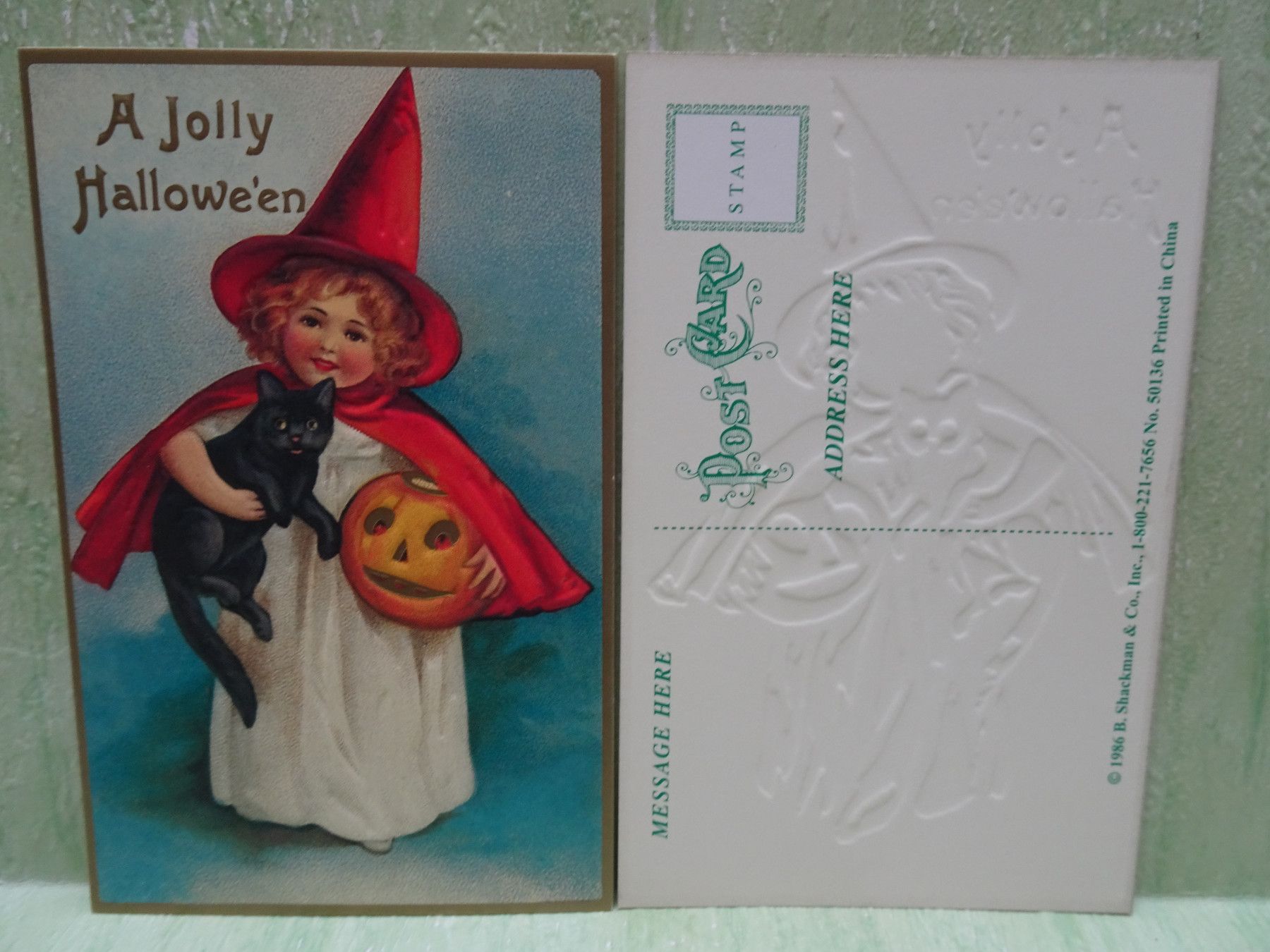 4 ältere geprägte Postkarten AK Shackman England C) 1986 Halloween Rarität !