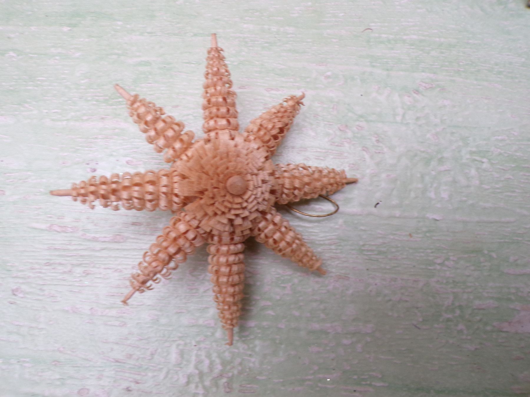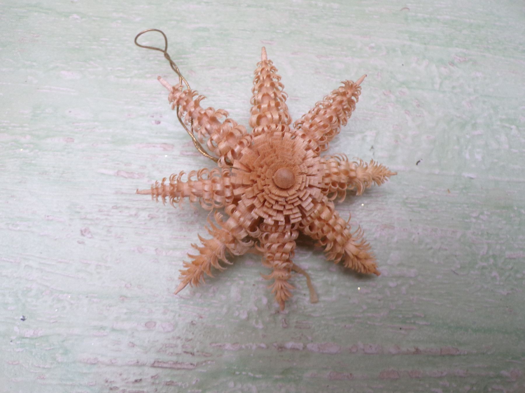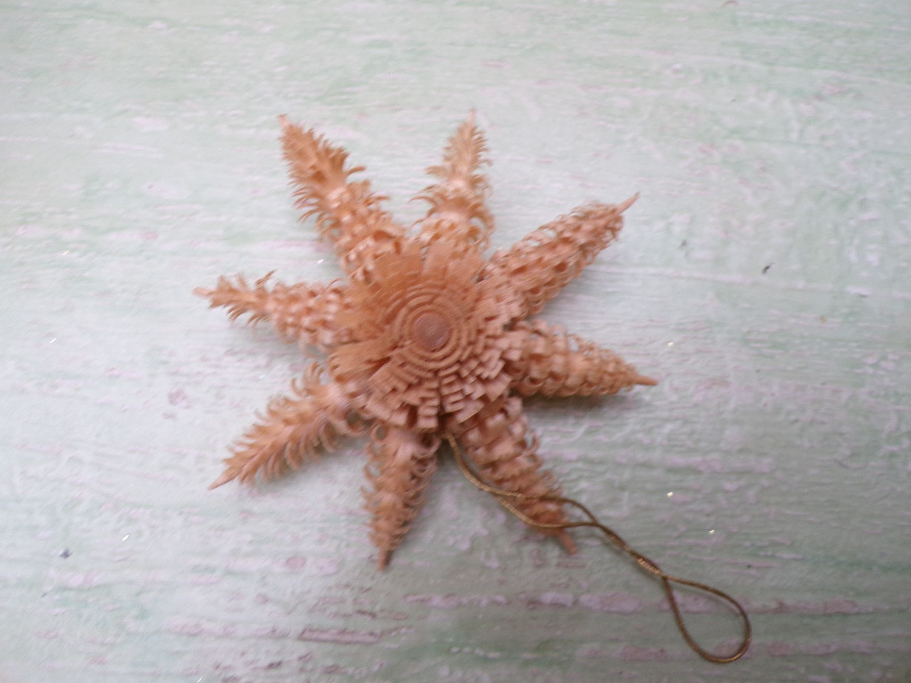 4 alte Erzgebirge Spanbaumstern Kräuselstern Christbaumschmuck 7,5cm