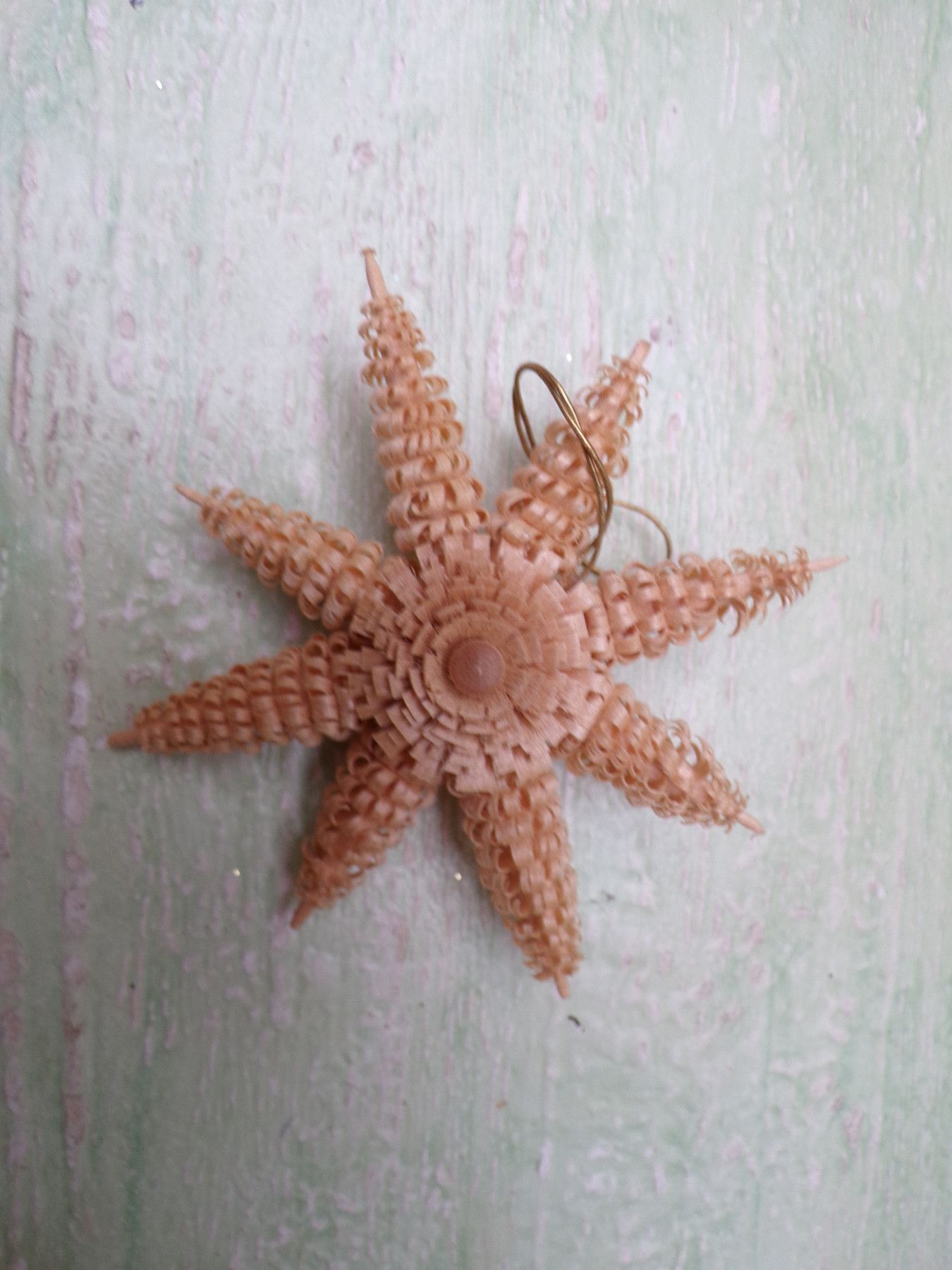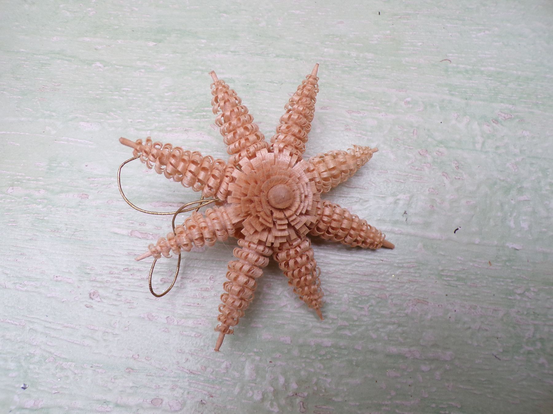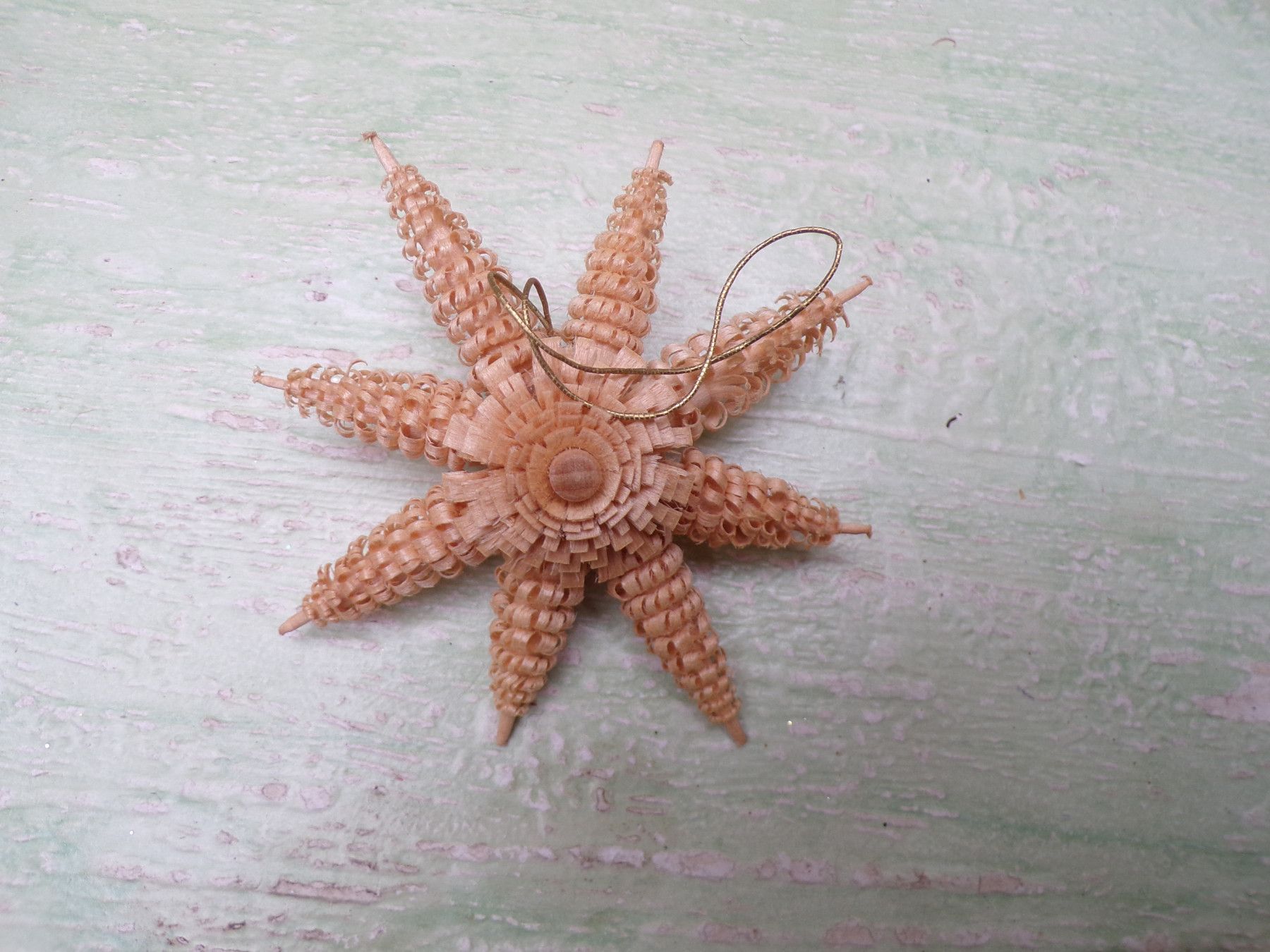 4 alte Erzgebirge Spanbaumstern Kräuselstern Christbaumschmuck 7,5cm