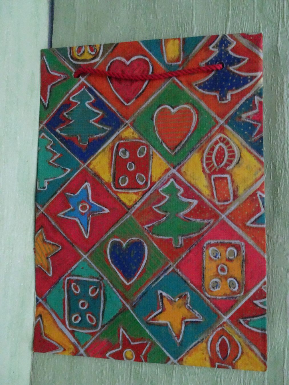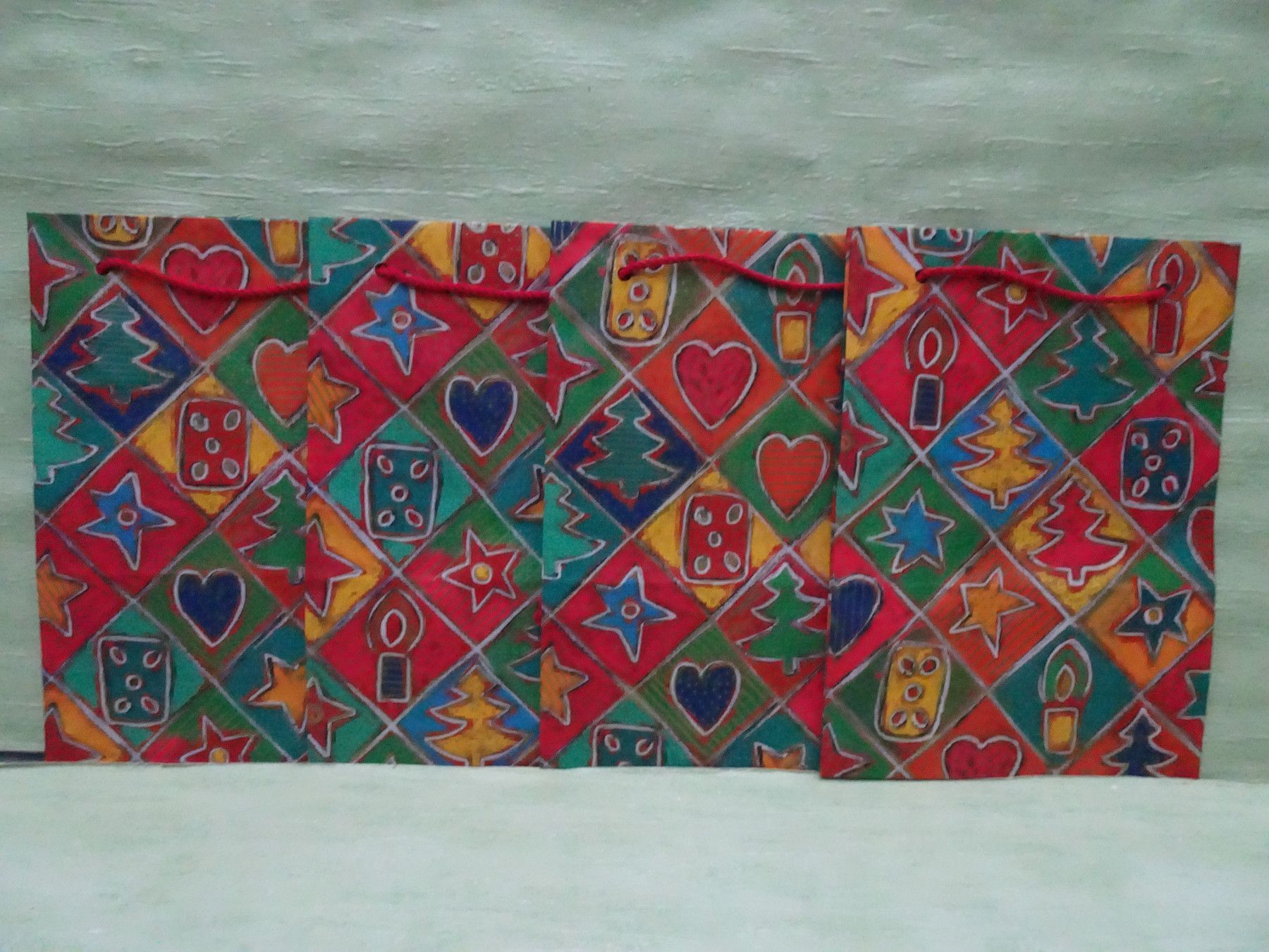 4 alte Geschenktüten Bodenbeutel Zugband Weihnachten 27 x 19 x 10 cm