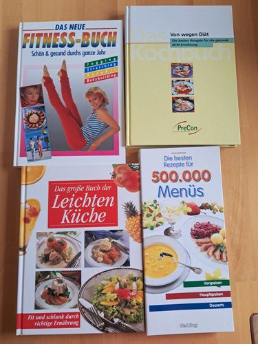 Ich biete hier diese 4 Bücher zum Thema Fitness, Diät...: Das große Buch der leichten Küche Das neue Fitness-Buch - schlank und gesund durchs ganze Jahr Von wegen Diät Die besten Rezepte für die gesunde BCM Ernährung Armin Rossmeier: Die besten Rezepte für 500.000 Menü Alle Bücher sind gebraucht, ab