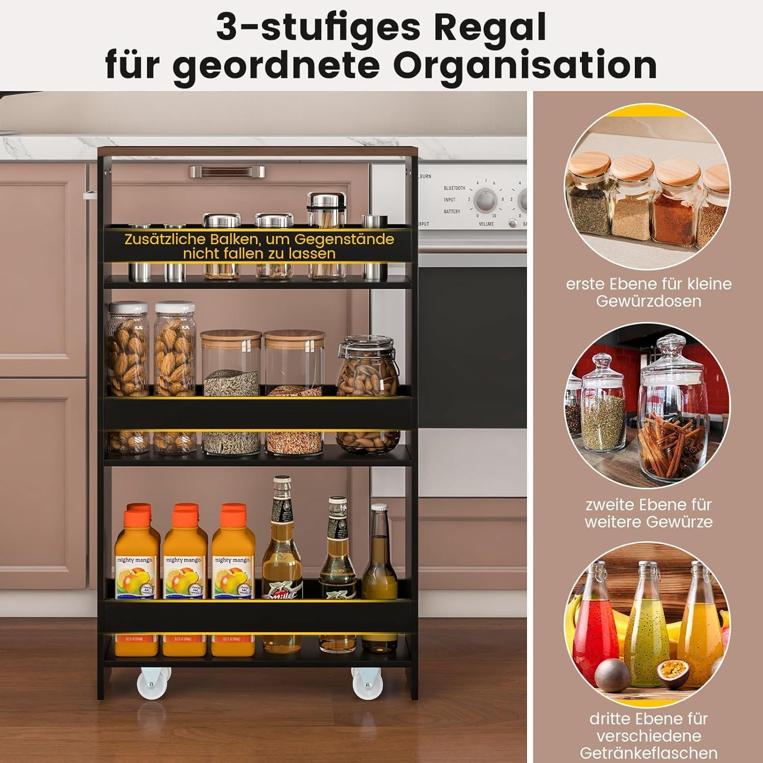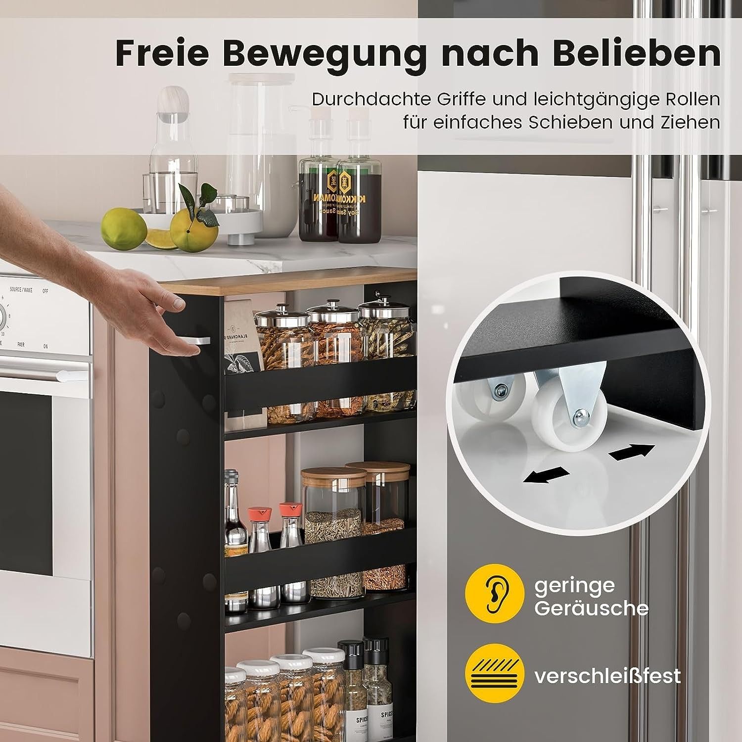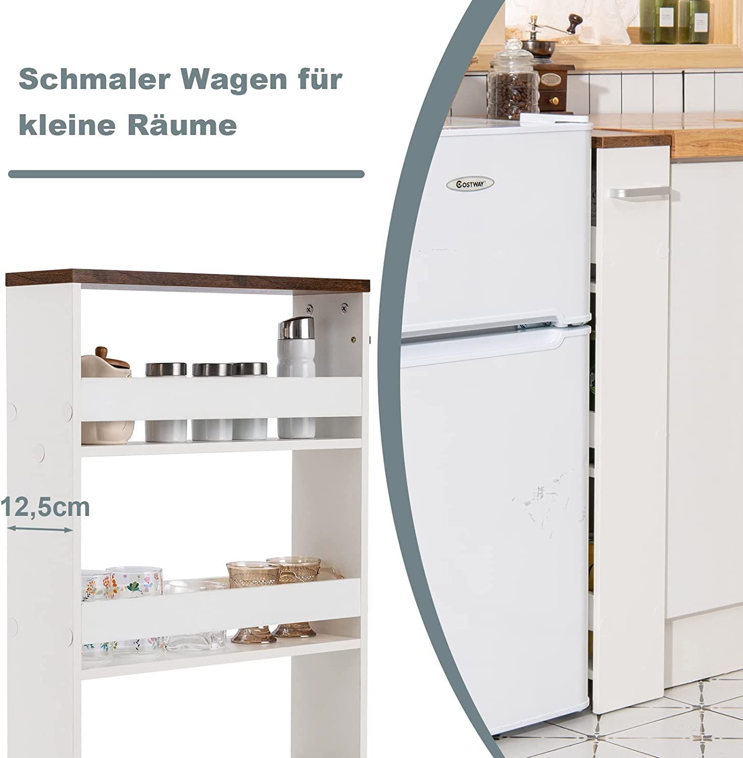 4 Ebenen Nischenregal auf Rollen, Küchenwagen schmal, Badregal mit seitlichem Griff