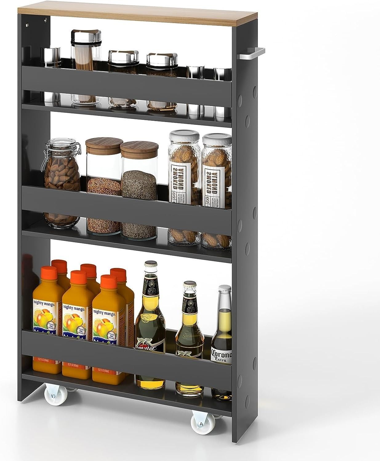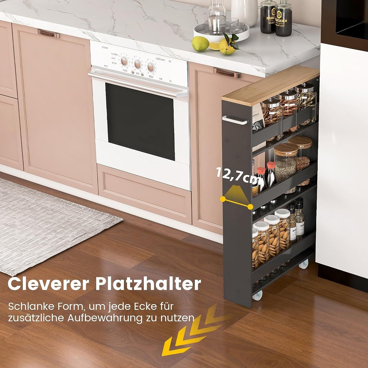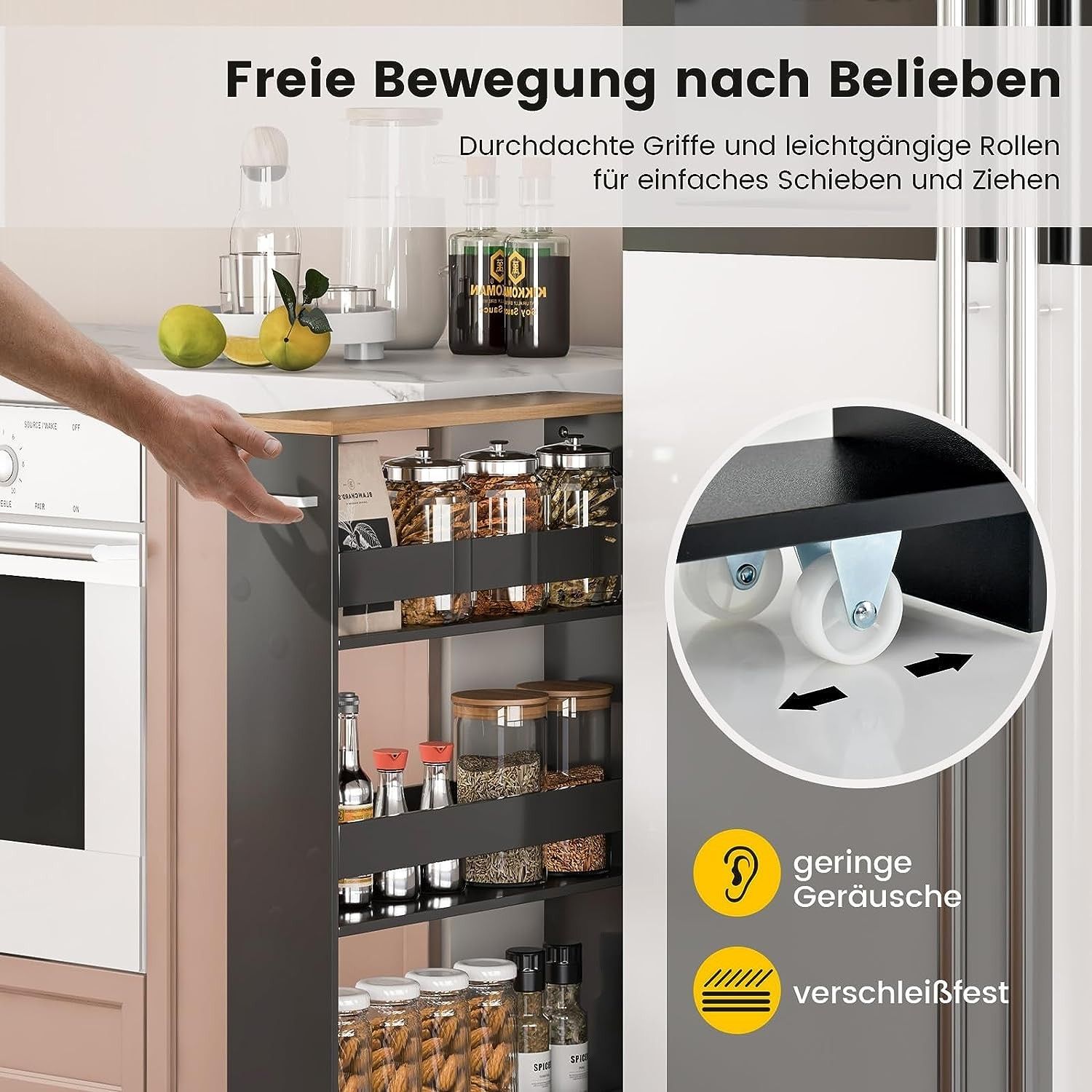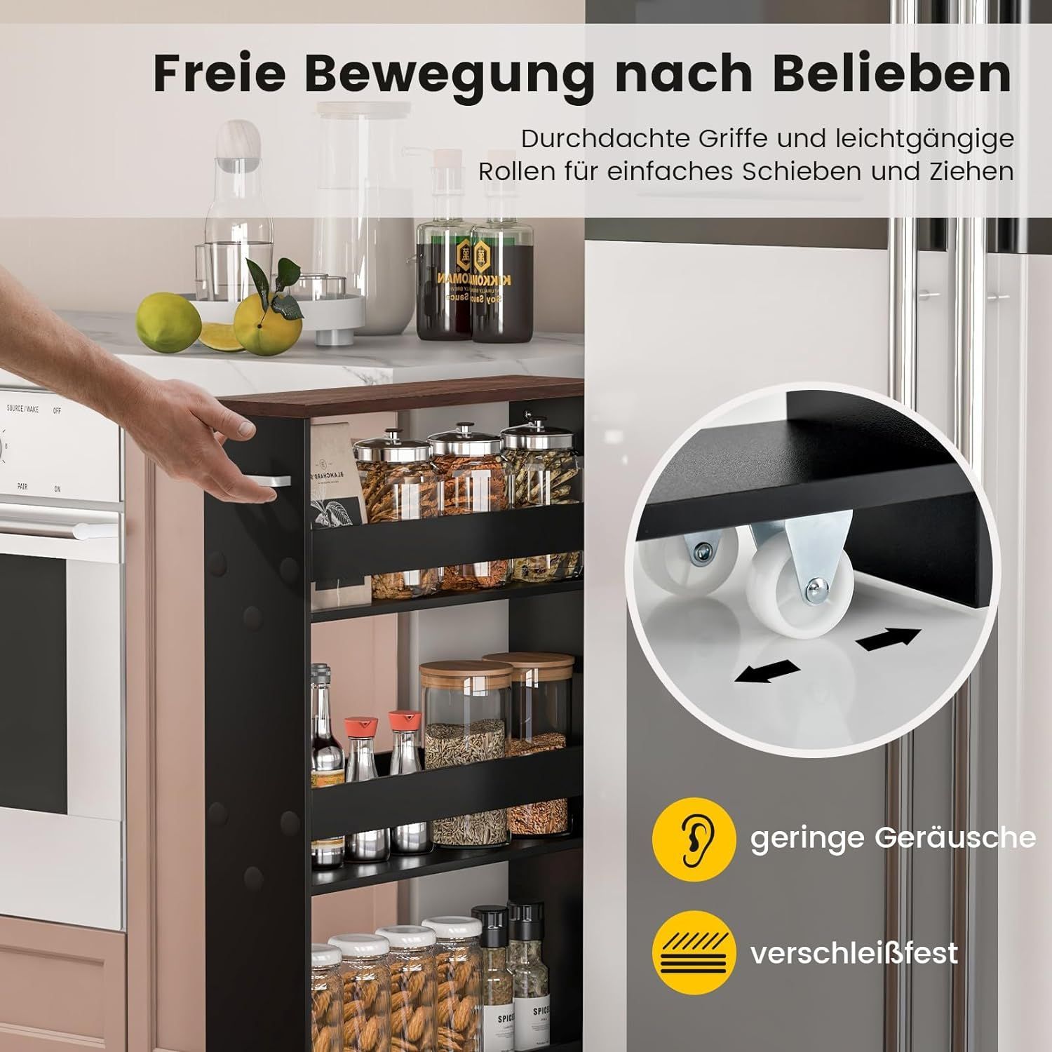 4 Ebenen Nischenregal auf Rollen, Küchenwagen schmal, Badregal mit seitlichem Griff