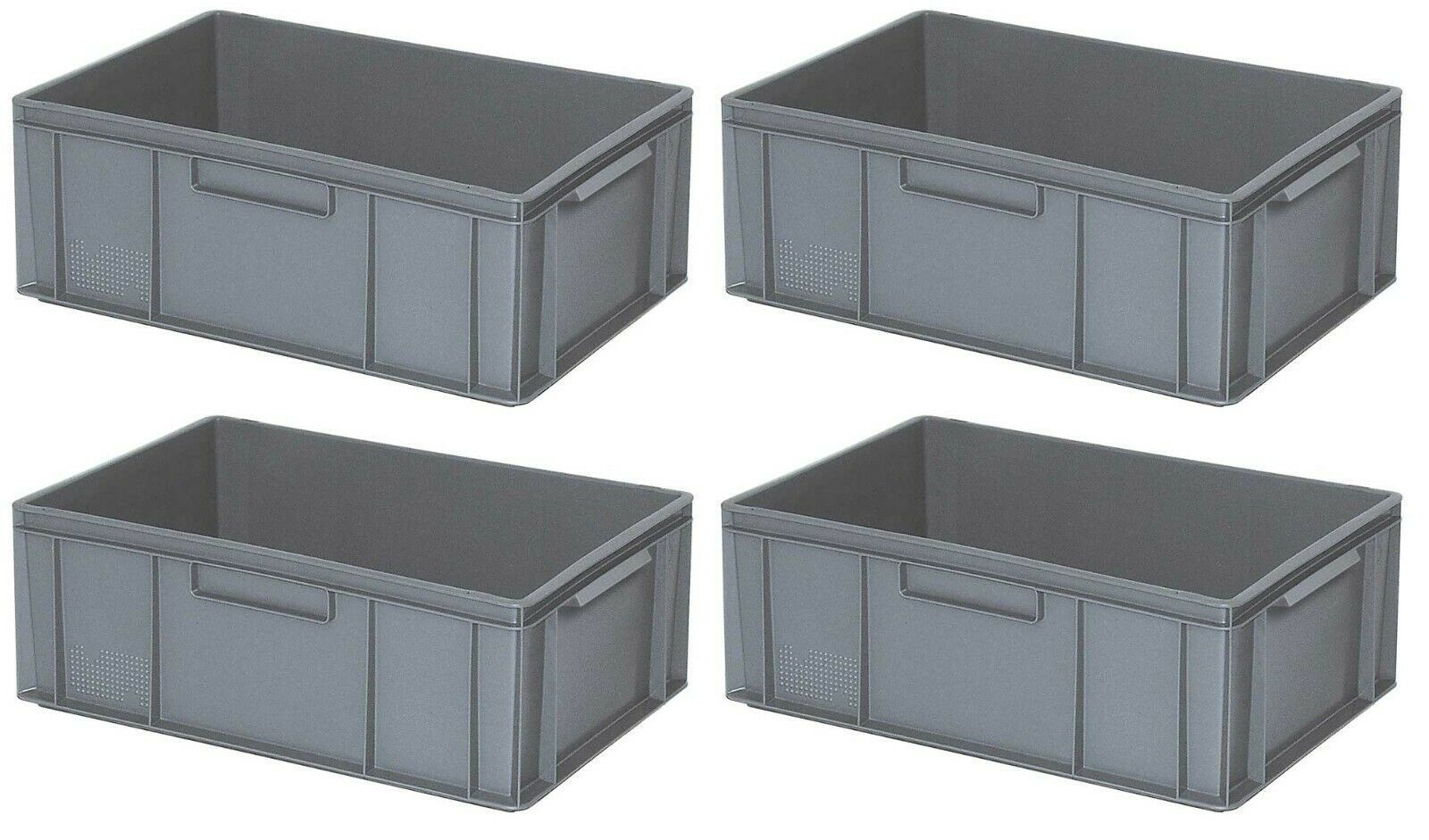 4 Eurobehälter mit 2 Griffleisten, LxBxH 600x400x220 mm, 43 L, lebensmittelecht
