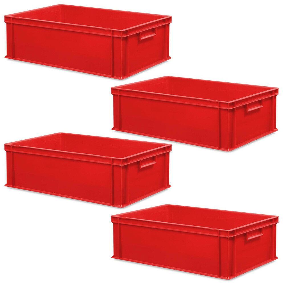 4 Eurobehälter mit 2 Griffleisten, LxBxH 600x400x220 mm, Inhalt 45 Liter, rot