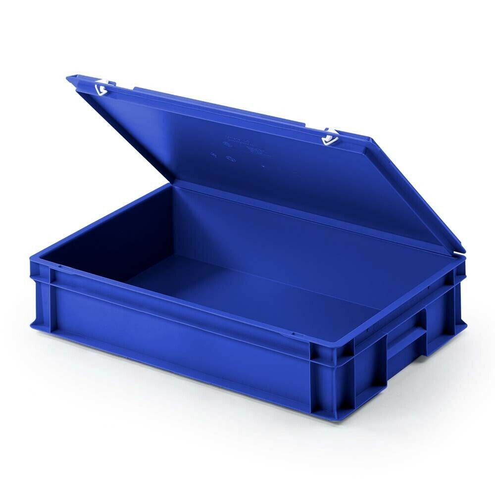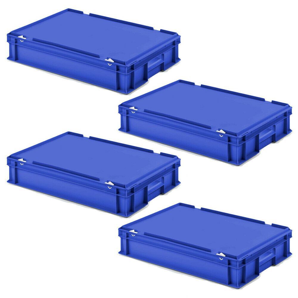 4 Euroboxen mit Scharnierdeckel, LxBxH 600x400x130 mm, PP, lebensmittelecht, blau