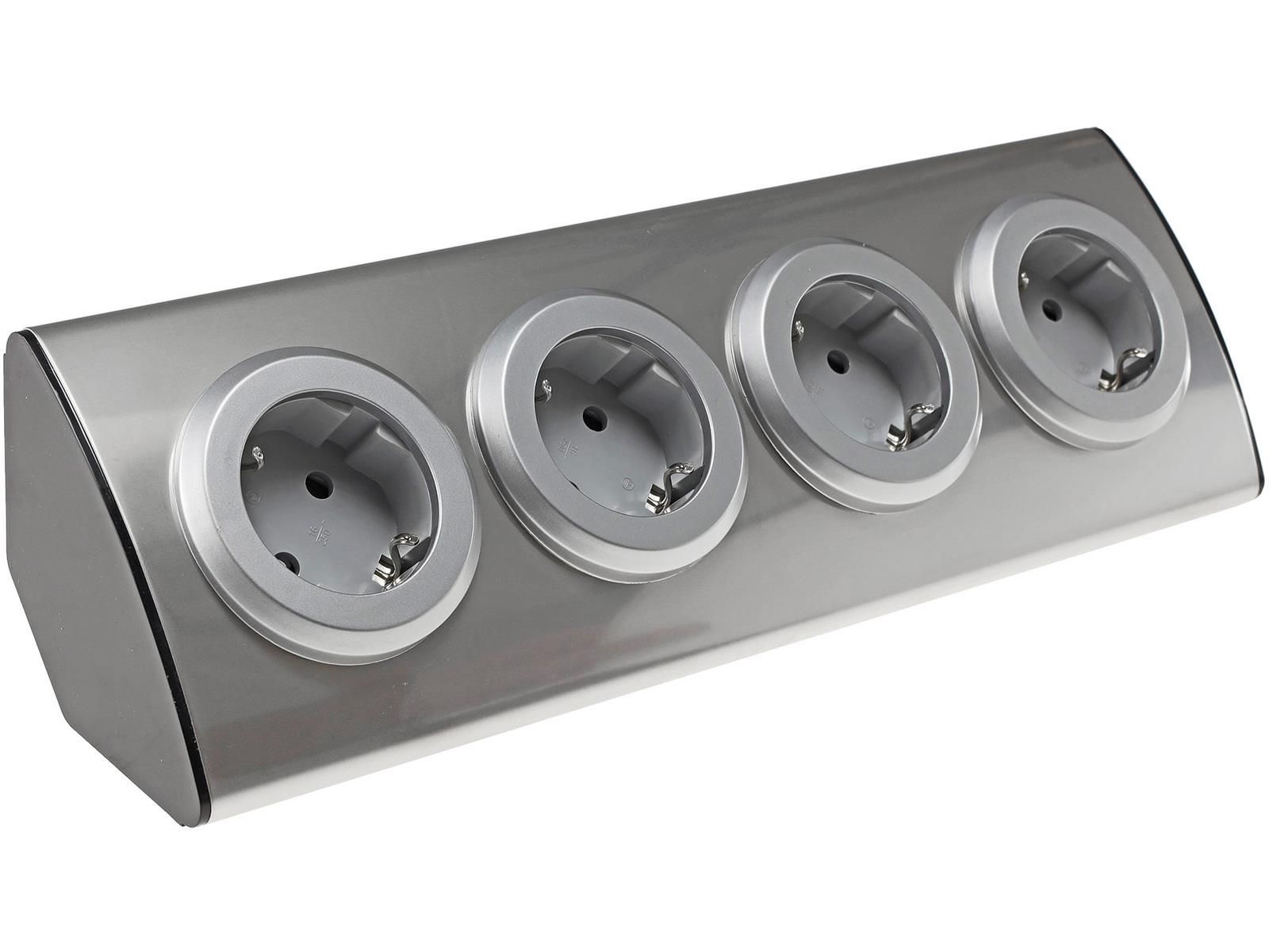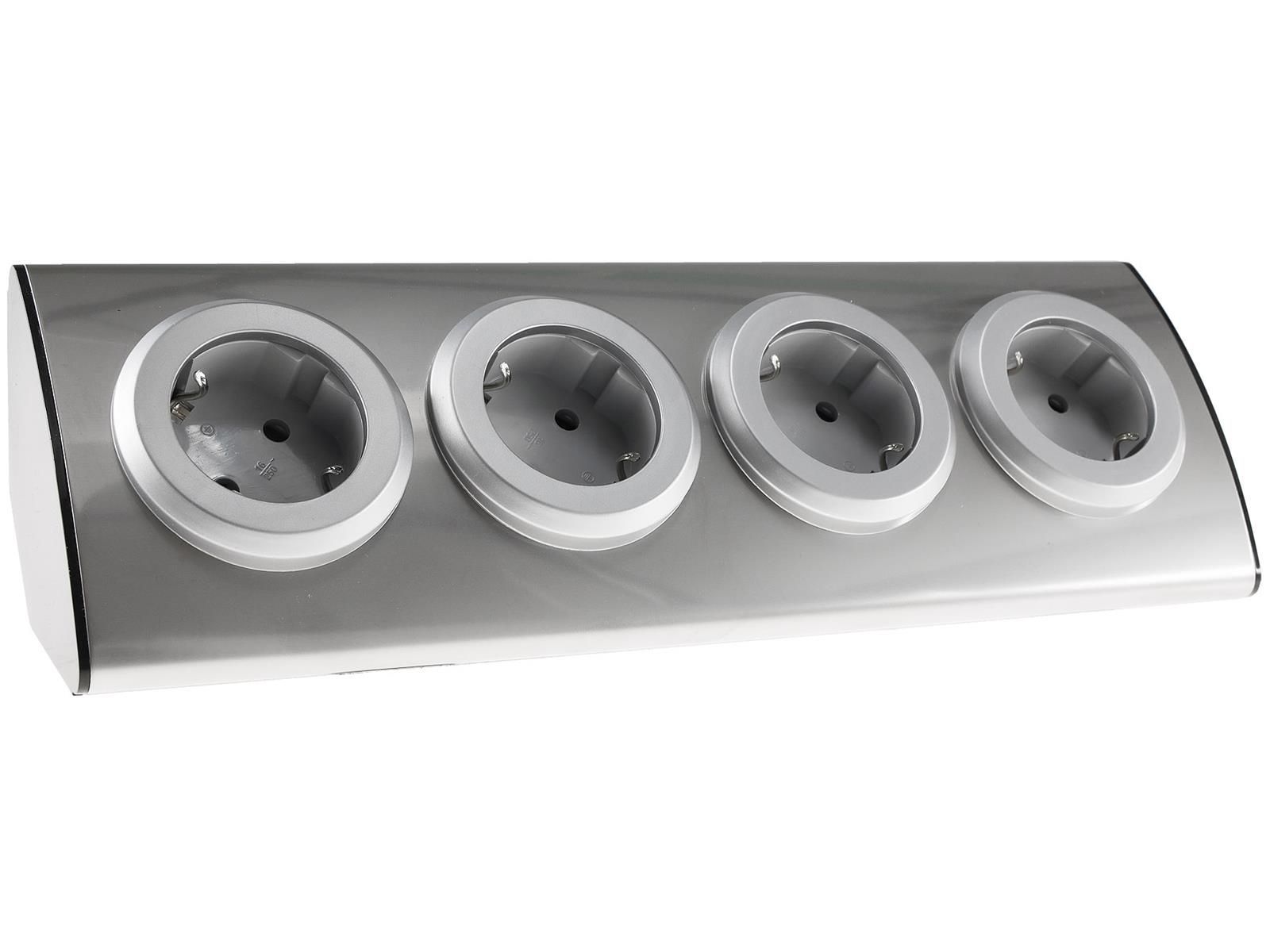 ChiliTec 4-fach Steckdosenblock Edelstahl90° für Eck- & Aufbaumontage