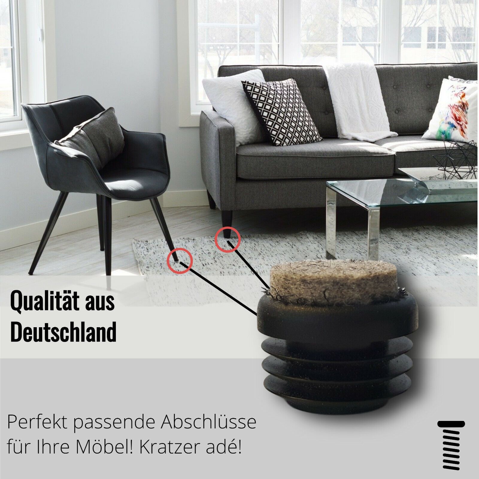 4 Stuhlgleiter, Kunststoff Filz, Schwarz, für runde Rohre Der angegebene Durchmesser bezieht sich auf das Rohraußenmaß. Die Gleiter sind für eine Rohrwandstärke von 1,5-2 mm geeignet. Die Schaftlänge liegt bei 16 mm . Material: Kunstoff, Filz Farbe: Schwarz Entdecken Sie auch unsere anderen Angebote