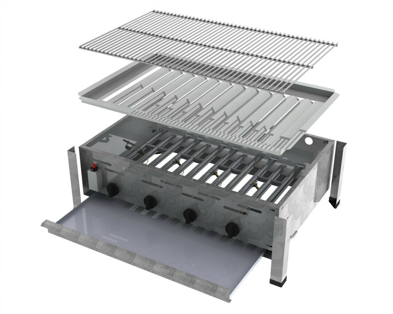 4 Flammen Edelstahl Gasgrill Gastrobräter Gasbräter Gas Grill 14,7 kW Gastro INOX