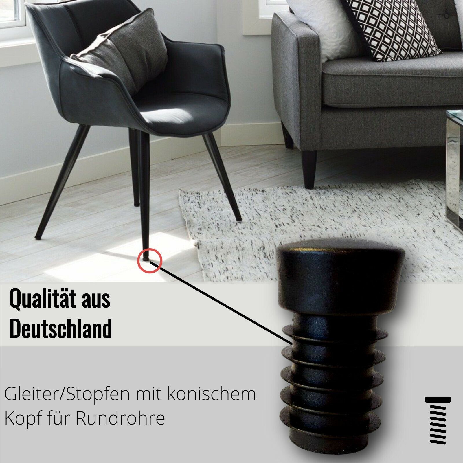 4 Stopfen mit Lamellen für runde Rohre, Kunststoff, Schwarz Mit konischem Kopf Das erste Maß gibt den Rohraussendurchmesser an. Das zweite Maß gibt die Rohrwandstärke an. Entdecken Sie auch unsere anderen Angebote Filzgleiter, Möbelfüße, Unterlegscheiben, und vieles mehr… Günstige Preise, schneller