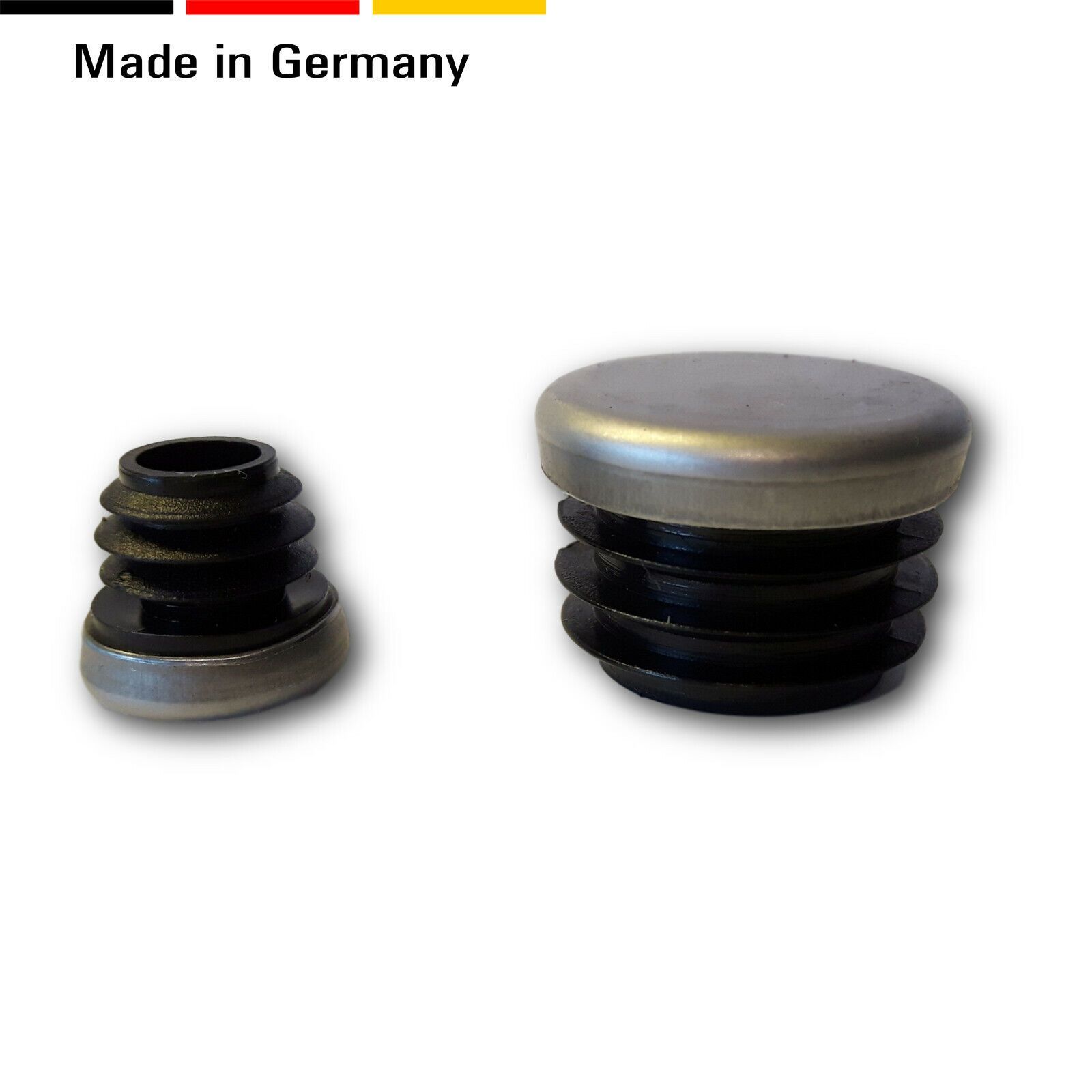 4 Stuhlgleiter Stopfen rund, Kunststoff Edelstahl, Schwarz, Edelstahlbodenkappe Die angegebenen Maße sind Rohraußenmaße Die Gleiter sind für eine Wandstärke von 1,5-2 mm geeignet Achtung!! Bitte beachten Sie, der Durchmesser der Edelstahlbodenkappe ist je nach Ausführung 2-5 mm größer als der Rohrdu