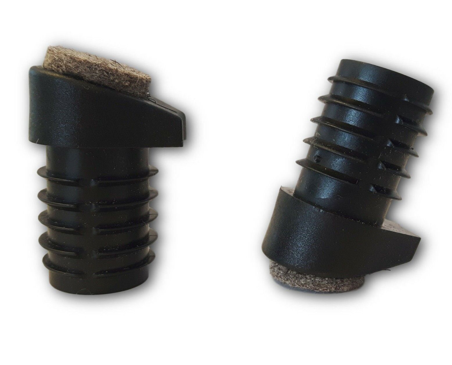 4 Stuhlgleiter, Kunststoff Filz, Schwarz Schräger Boden, mit Stapelschutz und Filz, für Stahlrohrstühle mit schrägstehenden Füßen Das erste Maß gibt den Rohraußendurchmesser an Diese Gleiter sind nur für eine Rohrwand stärke von 1,5 - 2 mm geeignet