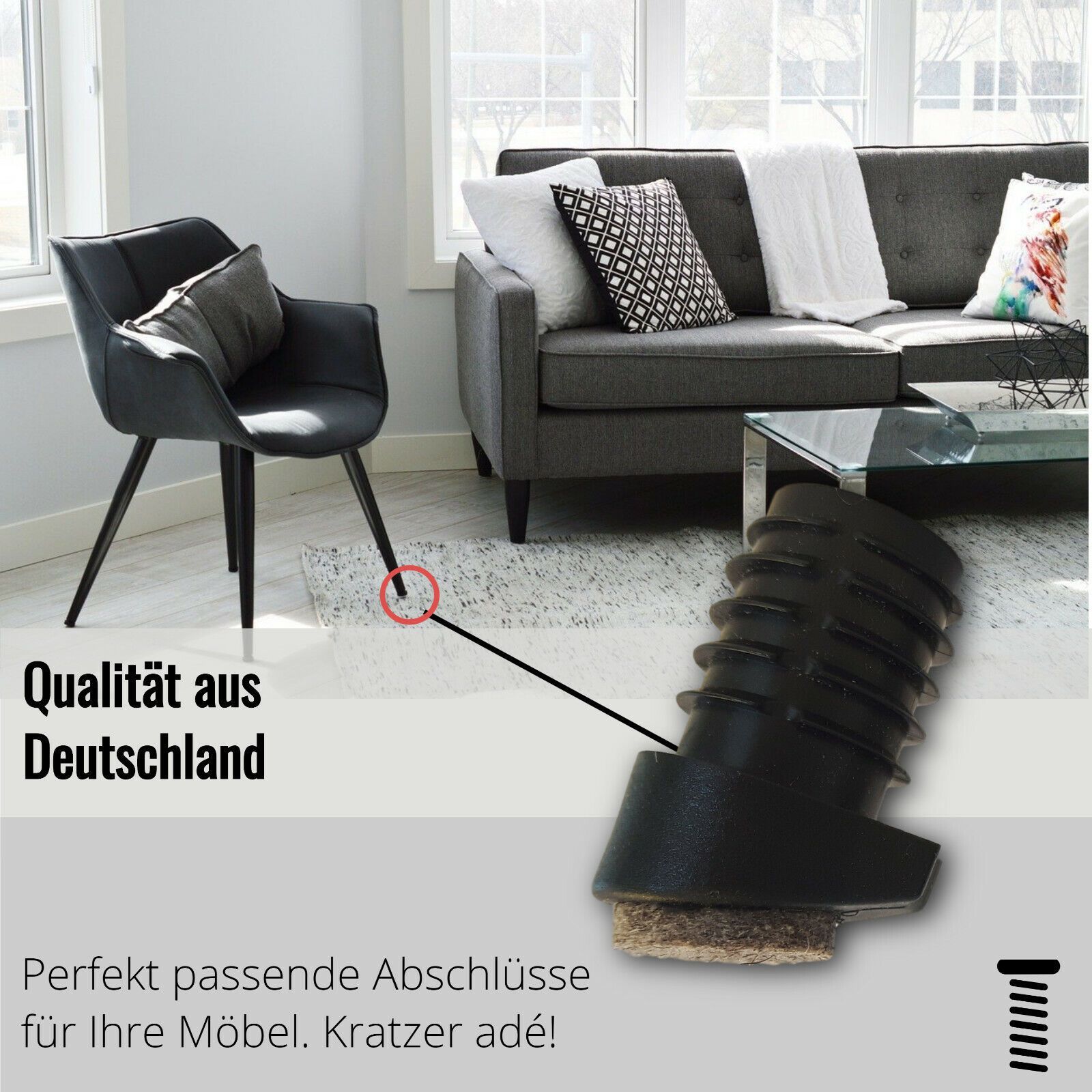 4 Fußstopfen/ Stuhlgleiter/ Bodenschoner Filzgleiter mit Filz Stapelschutz Schwarz