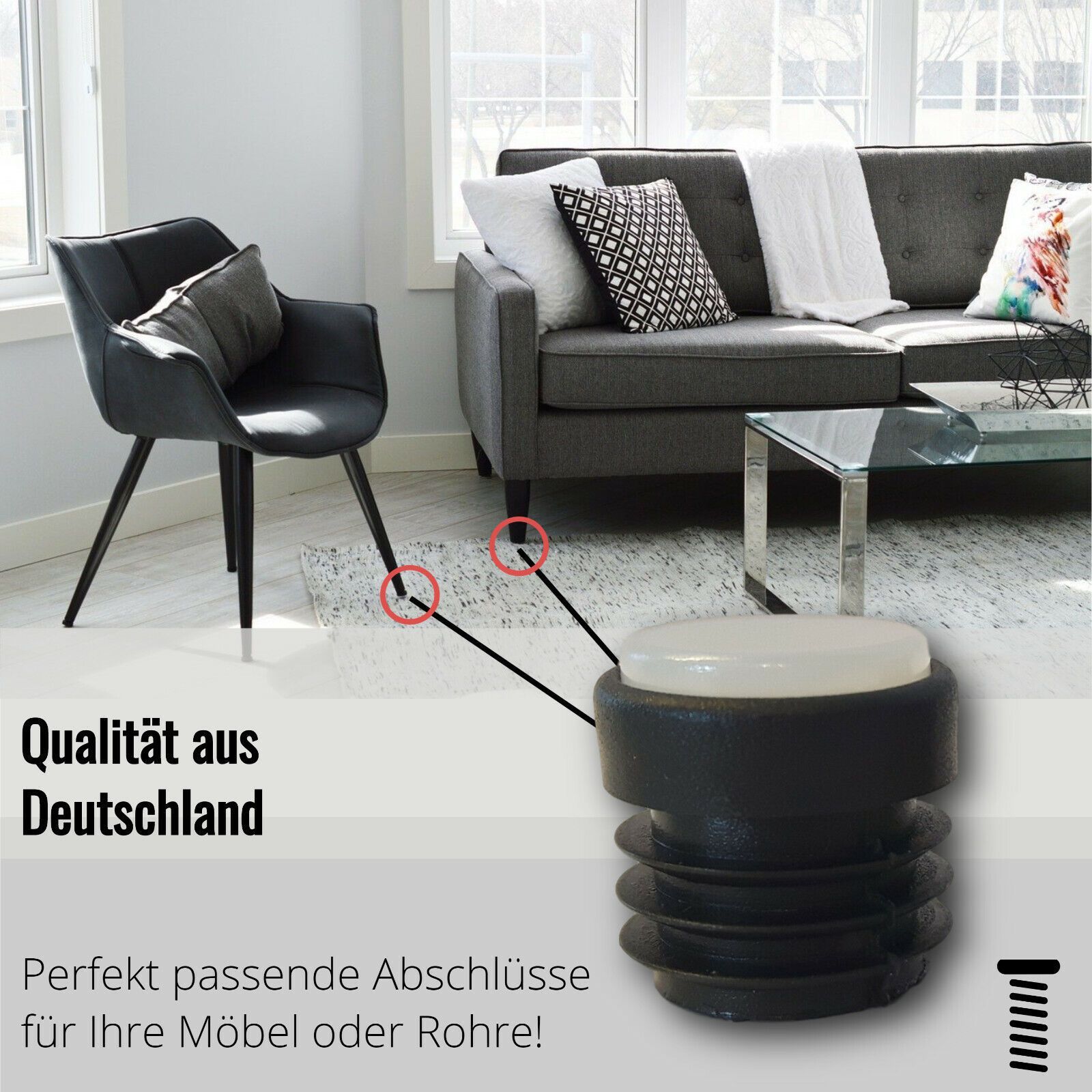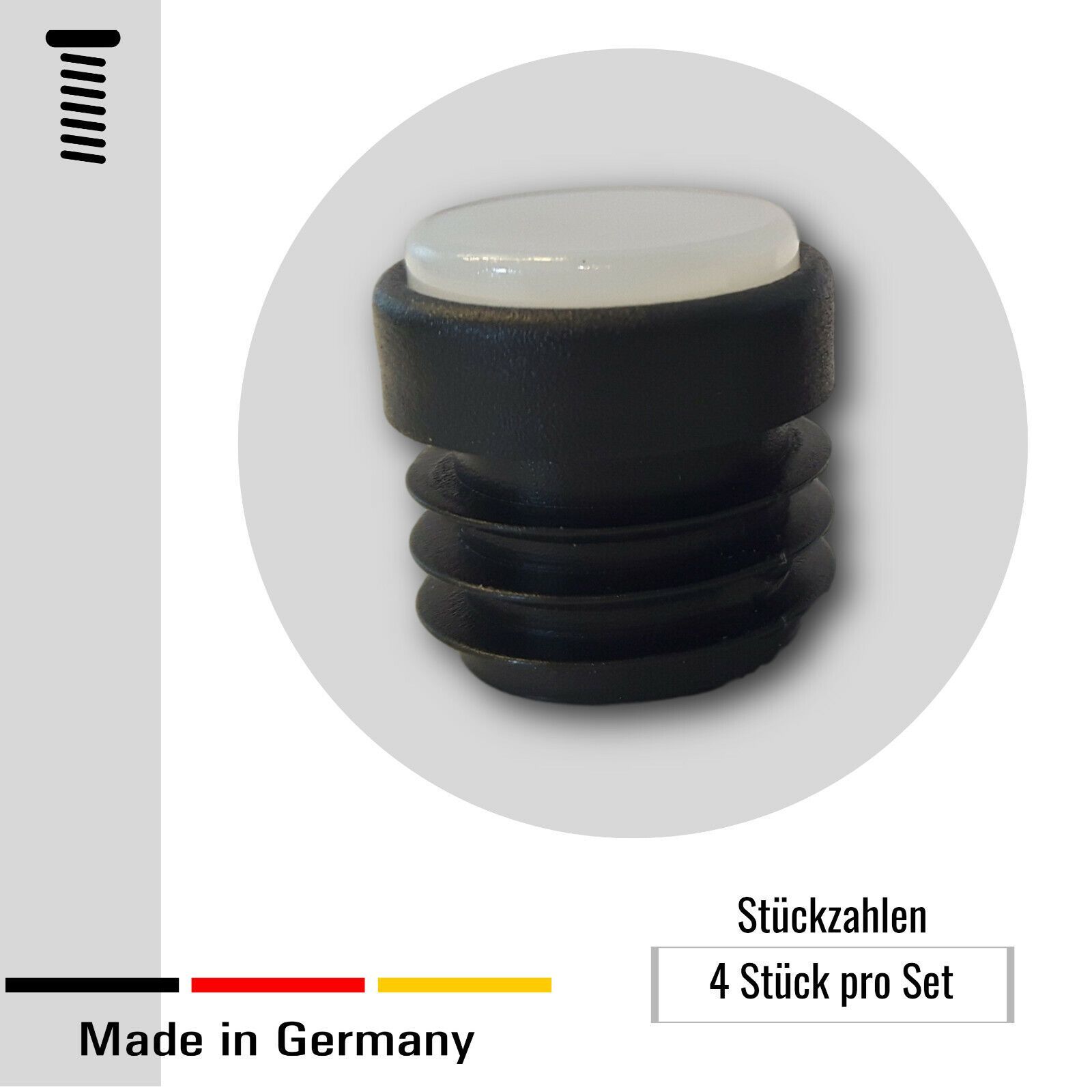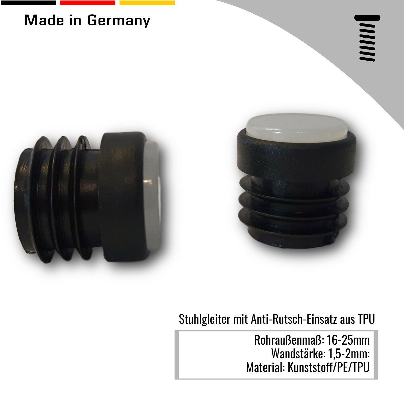 4 Fußstopfen/ Stuhlgleiter/ Endkappen 16-25 mm mit Anti-Rutsch-Einsatz TPU schwarz
