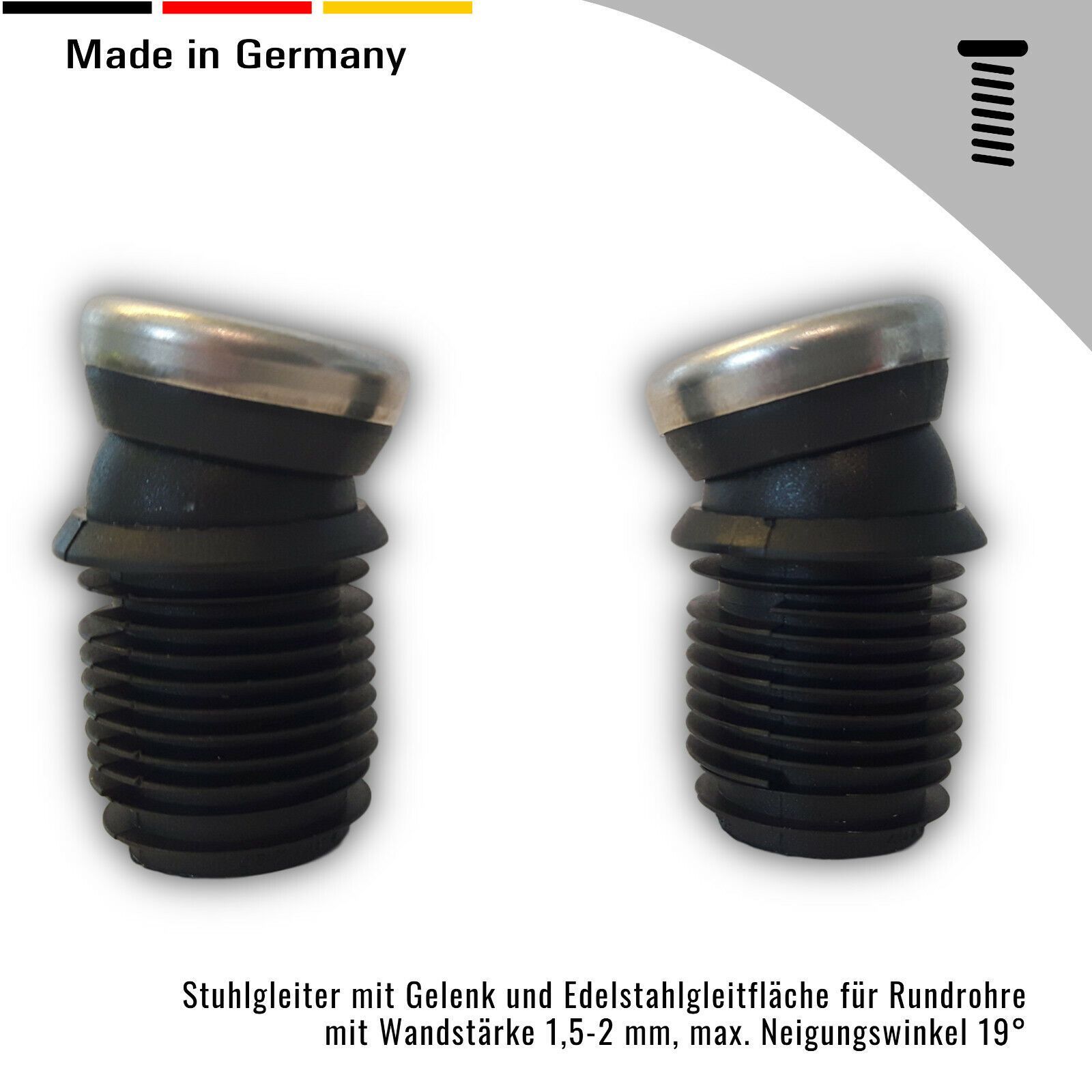 4 Fußstopfen/ Stuhlgleiter mit Gelenk u. Edelstahlgleitfläche, schwarz