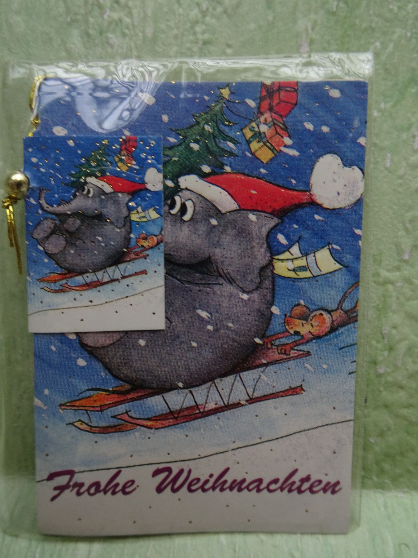 4 Geschenkanhänger & mini-Karte Goldband Perle lustige Tiere Weihnachten Poetic Card