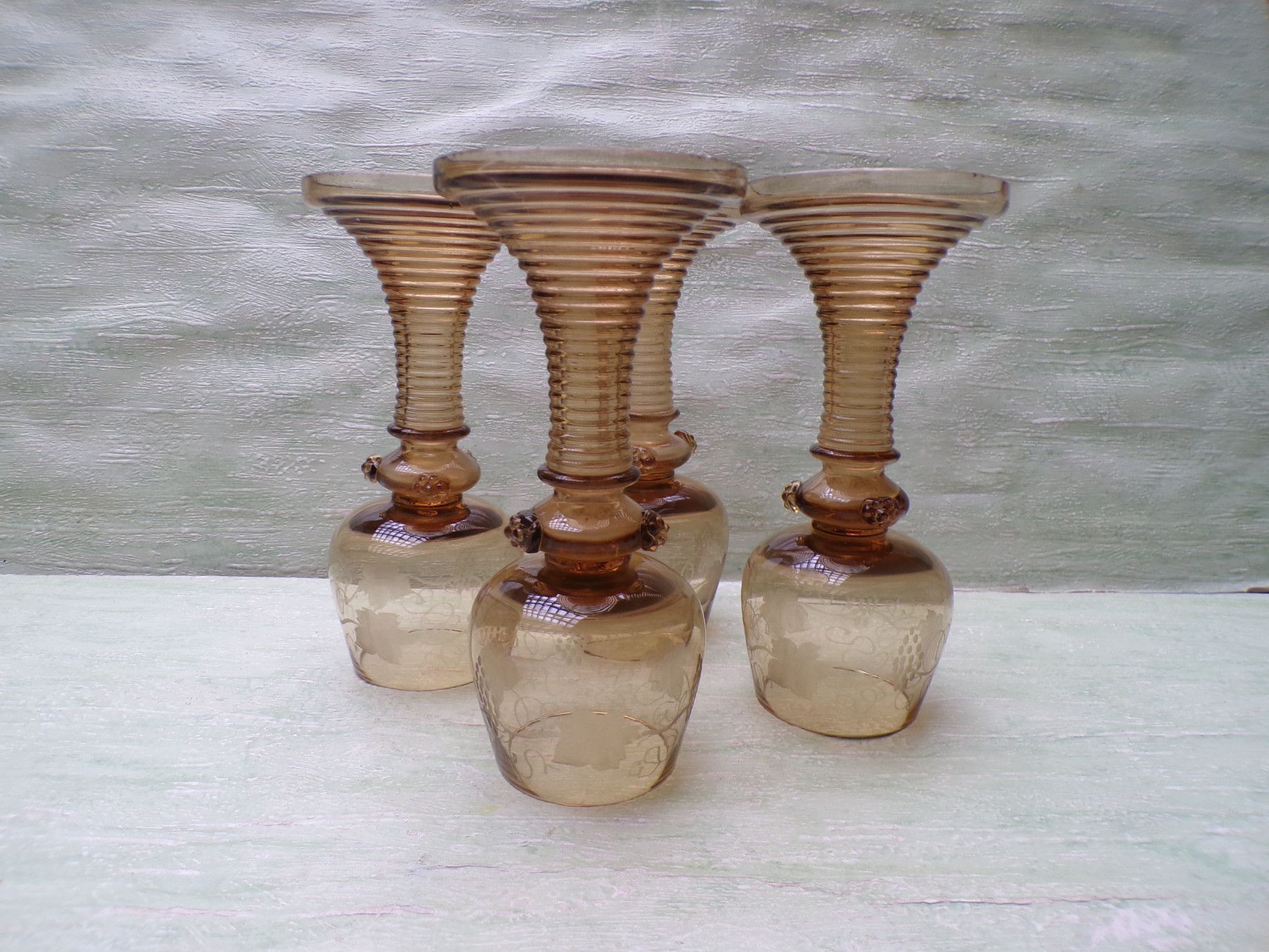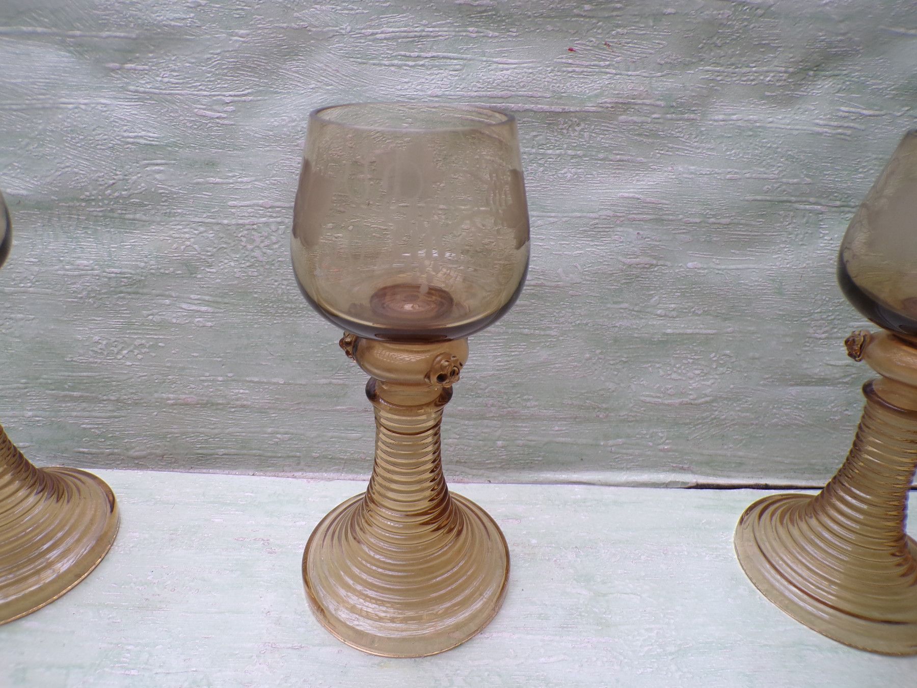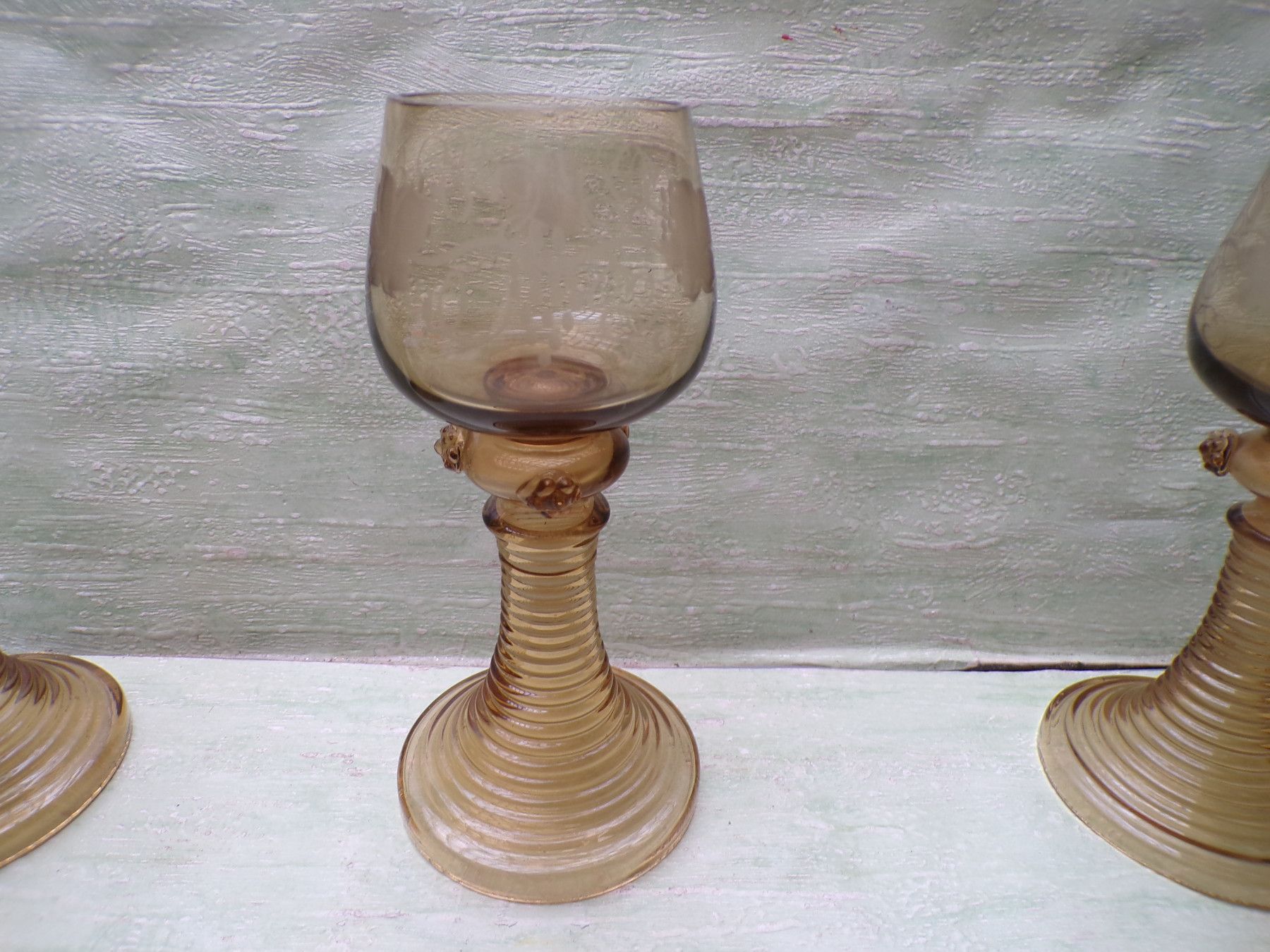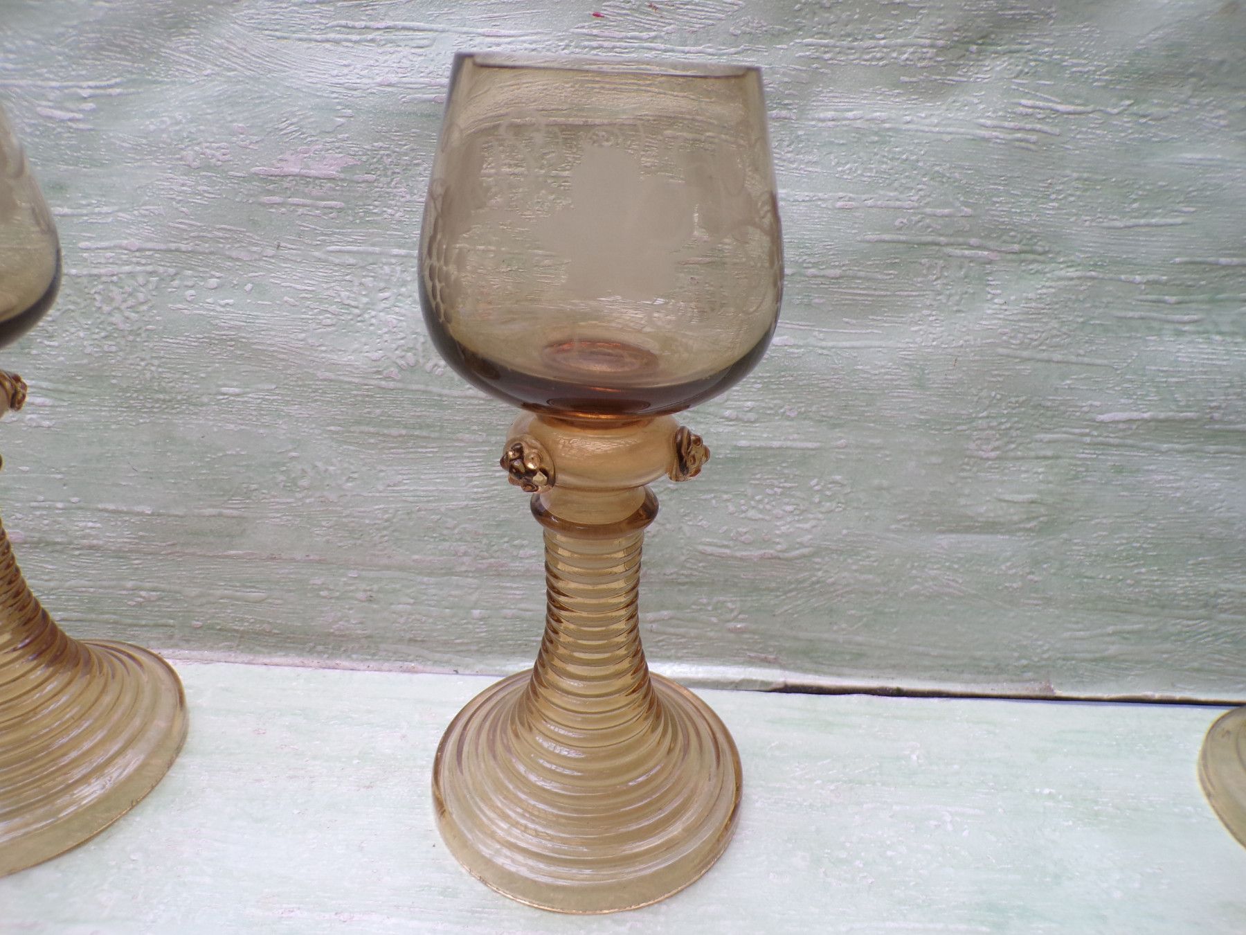 * * * Sammeln & Seltenes - Reklame & Werbung * * * * ... aus Freude an schönen Dingen ..... . 4 alte Römer mit Weinlaubdekor Theresienthal . Zustand : gebraucht , sehr gut !!! ... bitte Fotos anschauen ... !!! Bestandteil der Beschreibung Bitte berücksichtigen Sie , daß die Farben Foto Origi... Mehr
