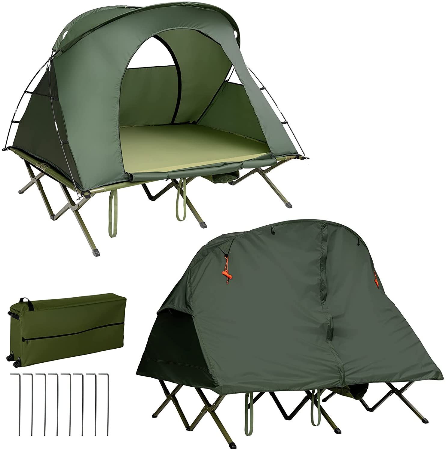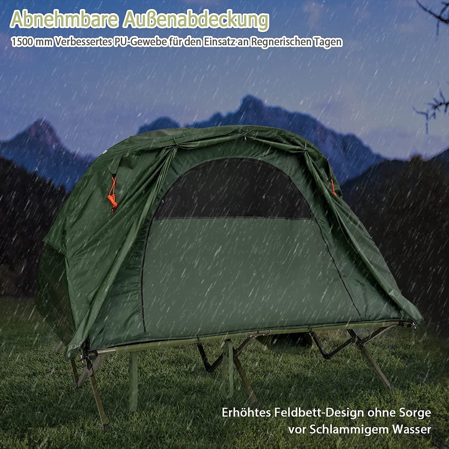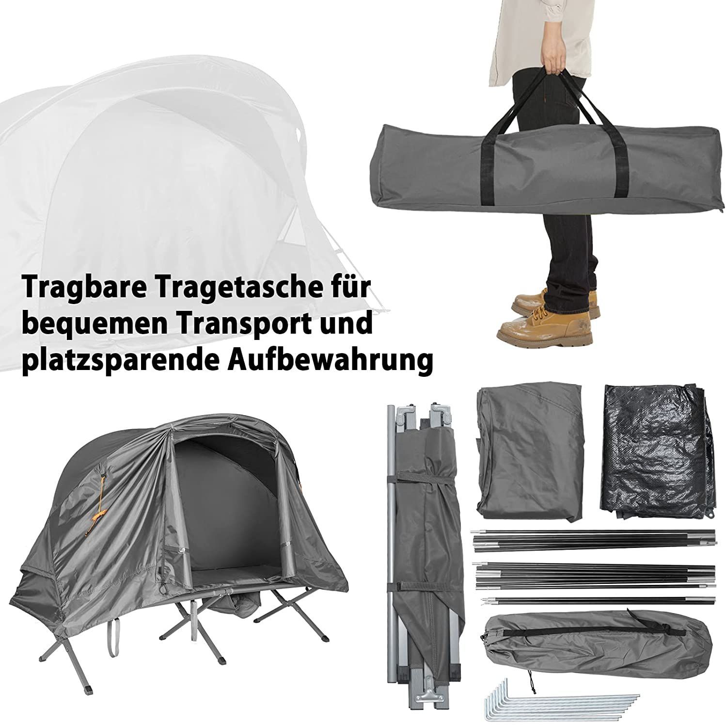 4 in 1 Campingzelt Set für 2 Personen Erhöhtes Campingbett&Zelt, Faltbares Kuppelzelt