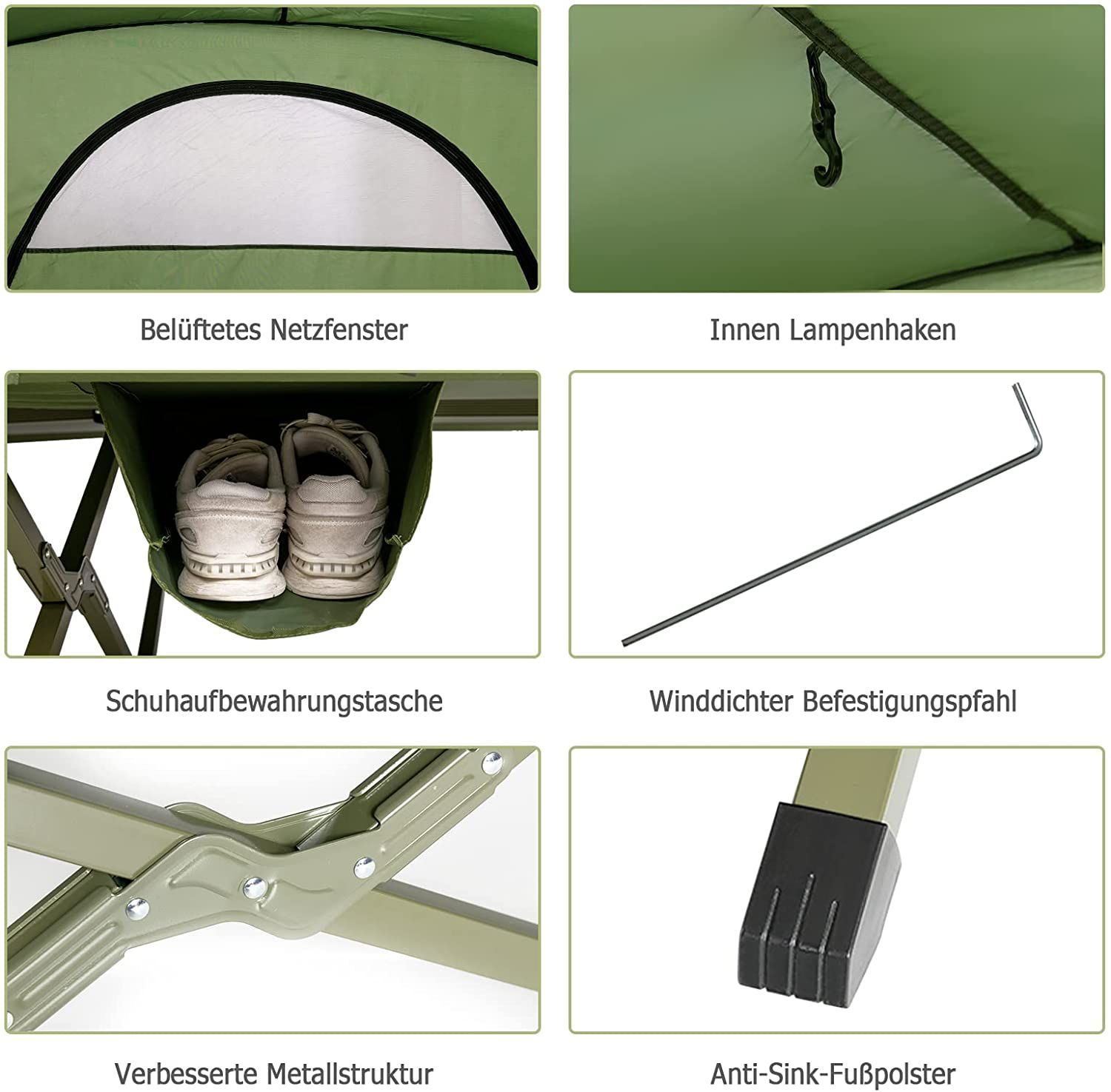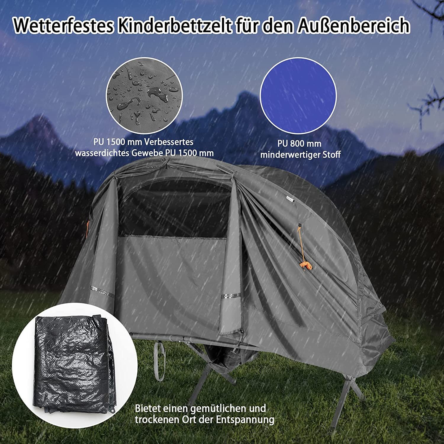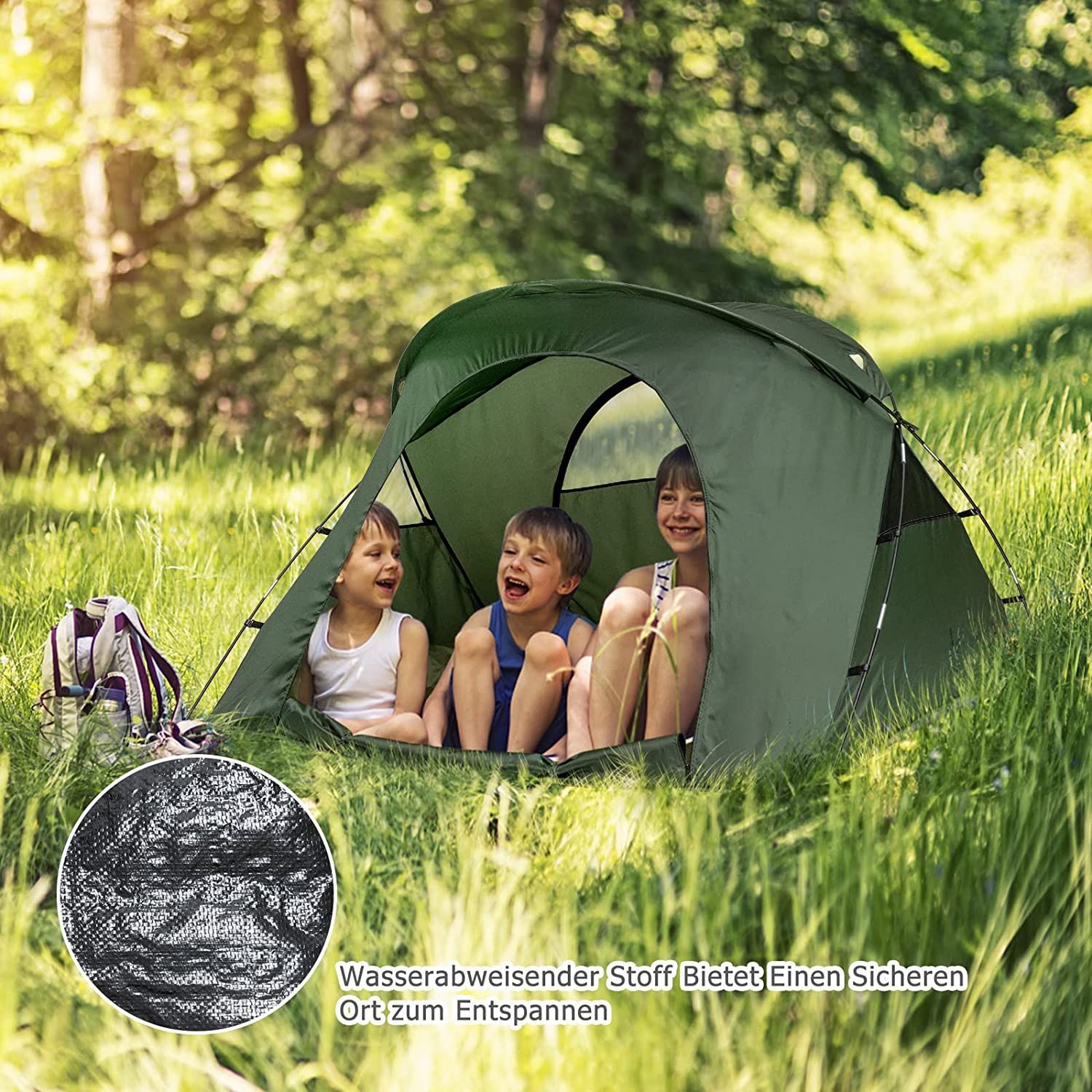 4 in 1 Campingzelt Set für 2 Personen Erhöhtes Campingbett&Zelt, Faltbares Kuppelzelt