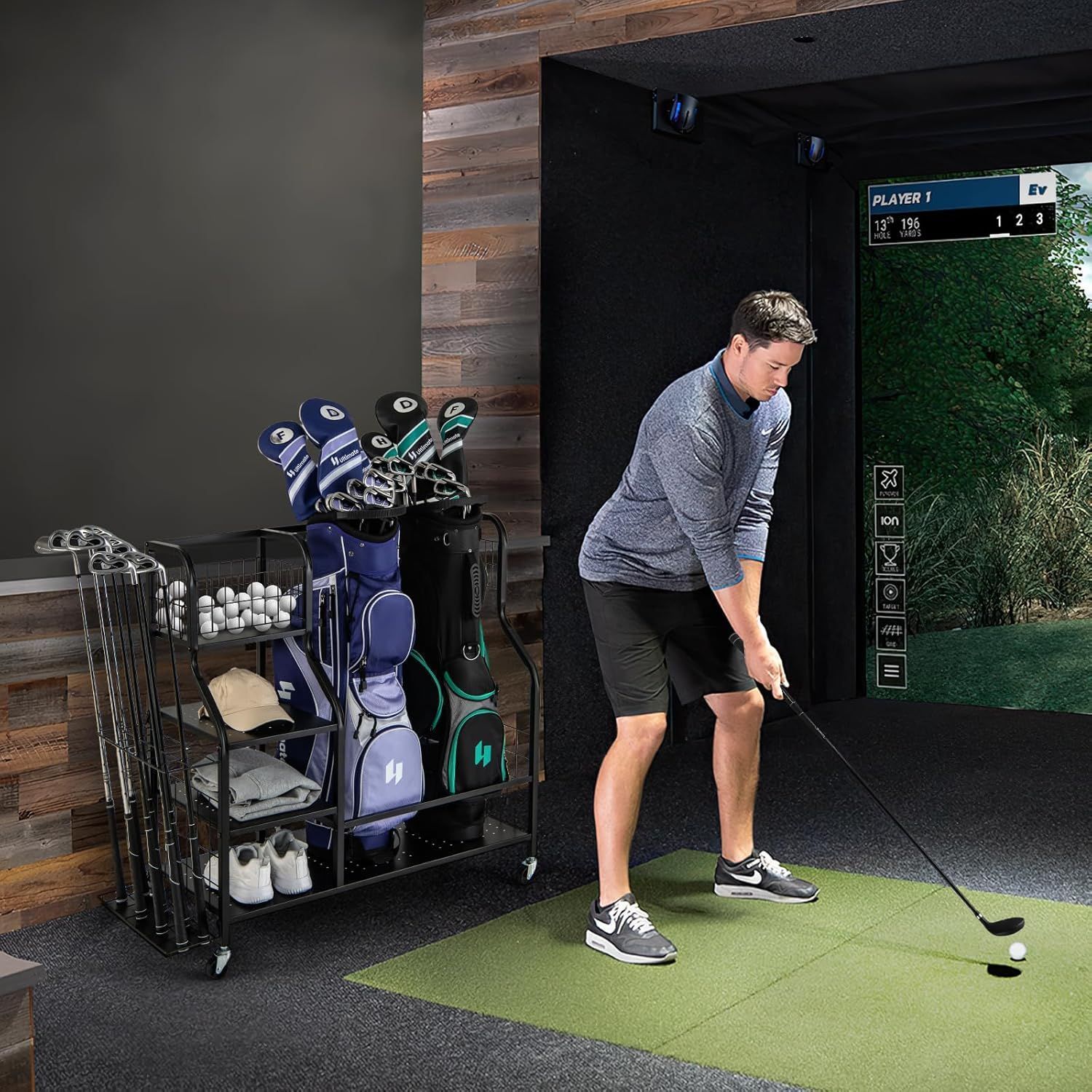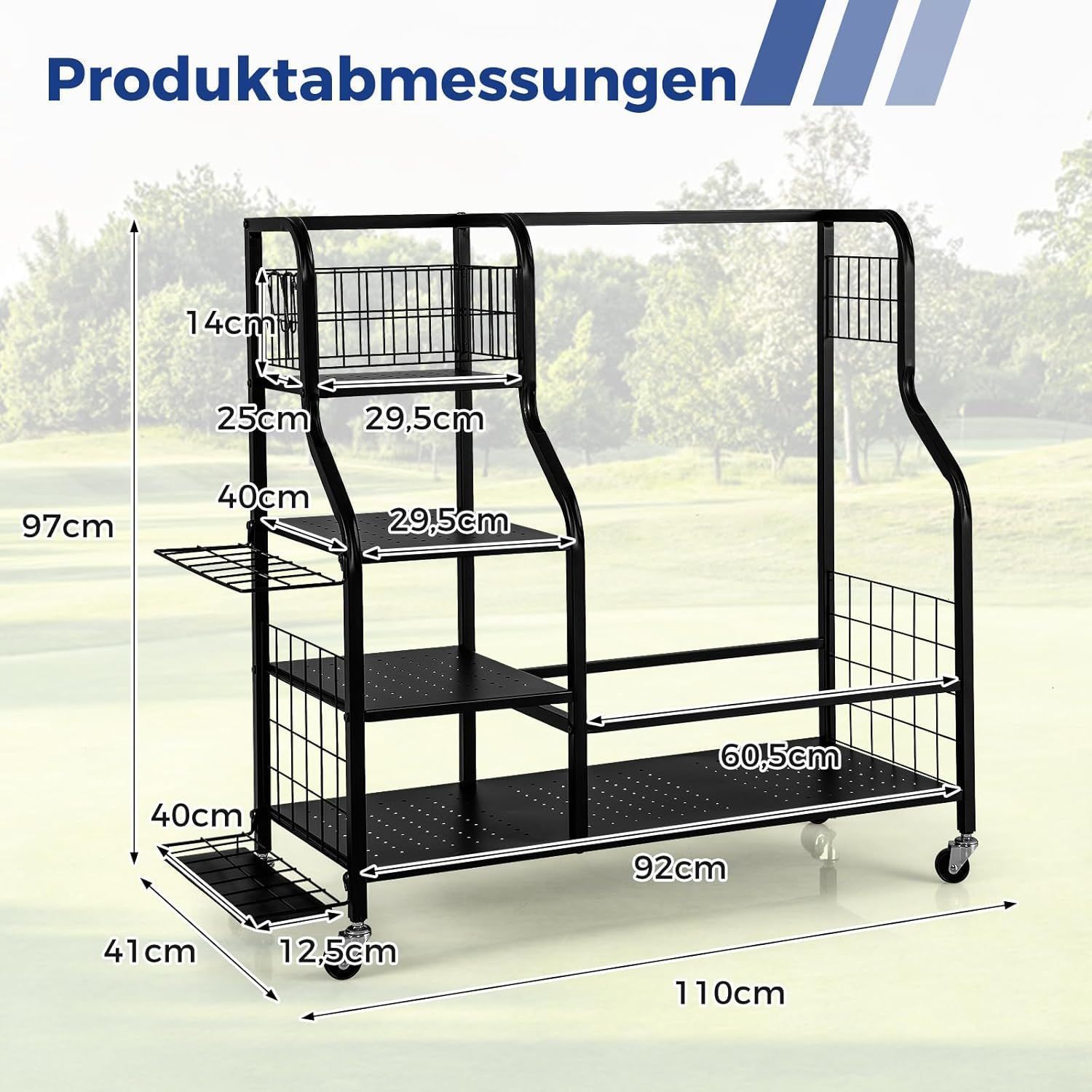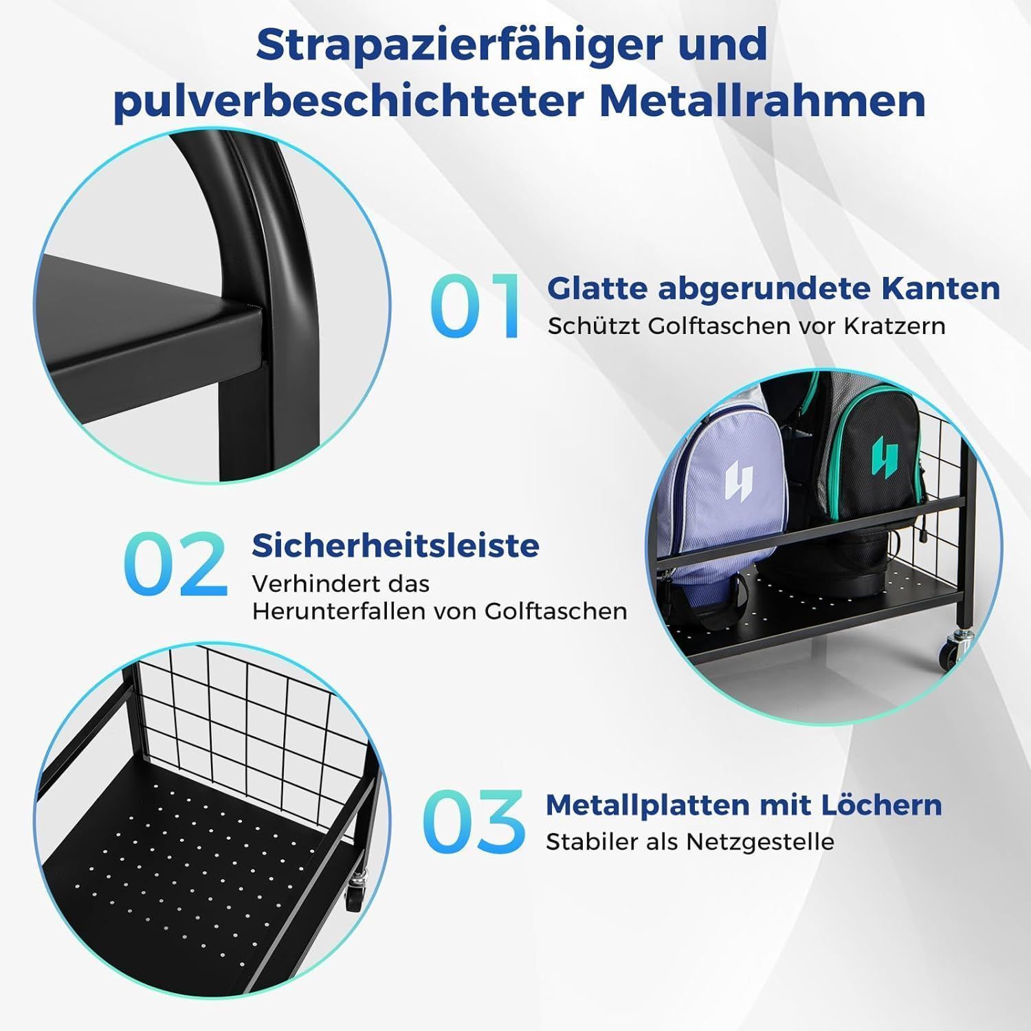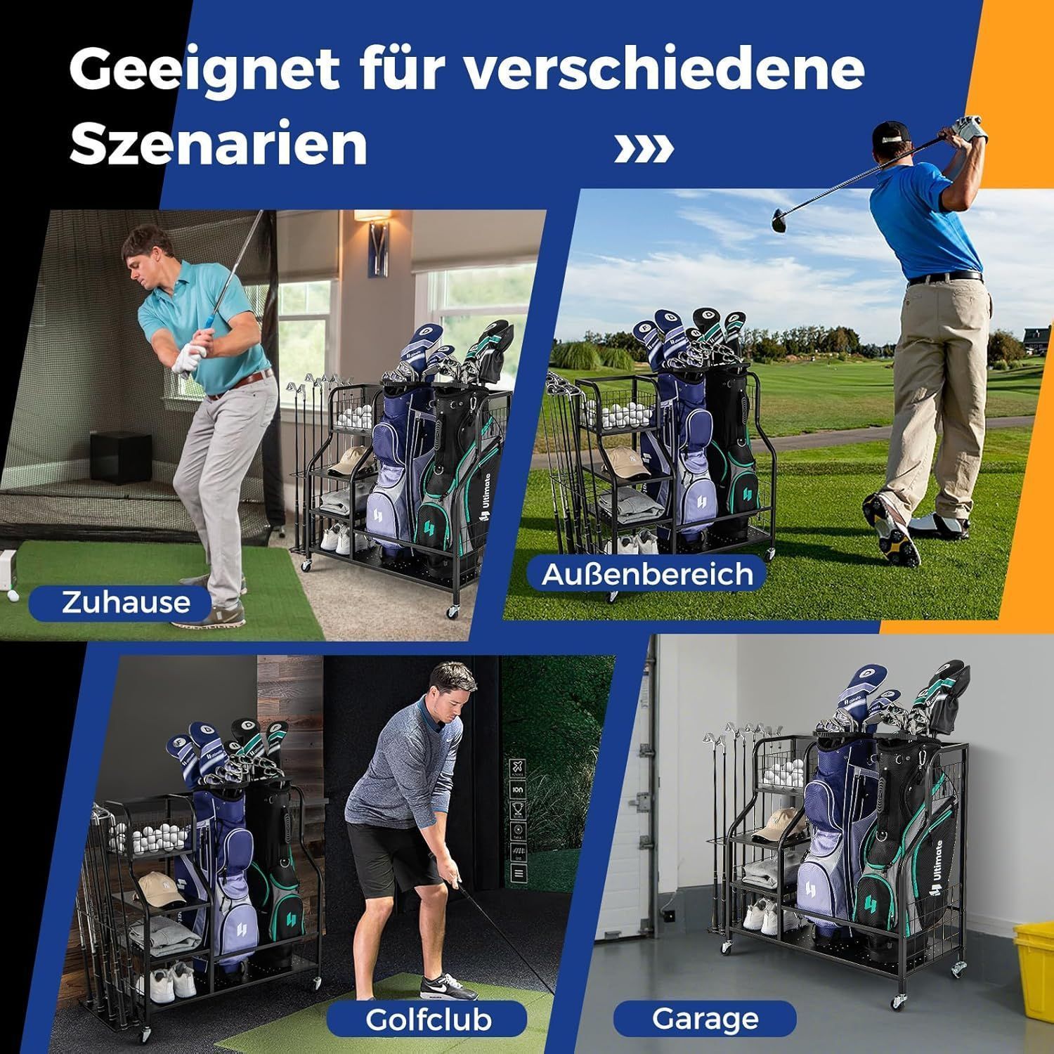 4 in 1 Golf Organizer, Golfschläger-Organizer mit Rollen, für 2 Golftaschen