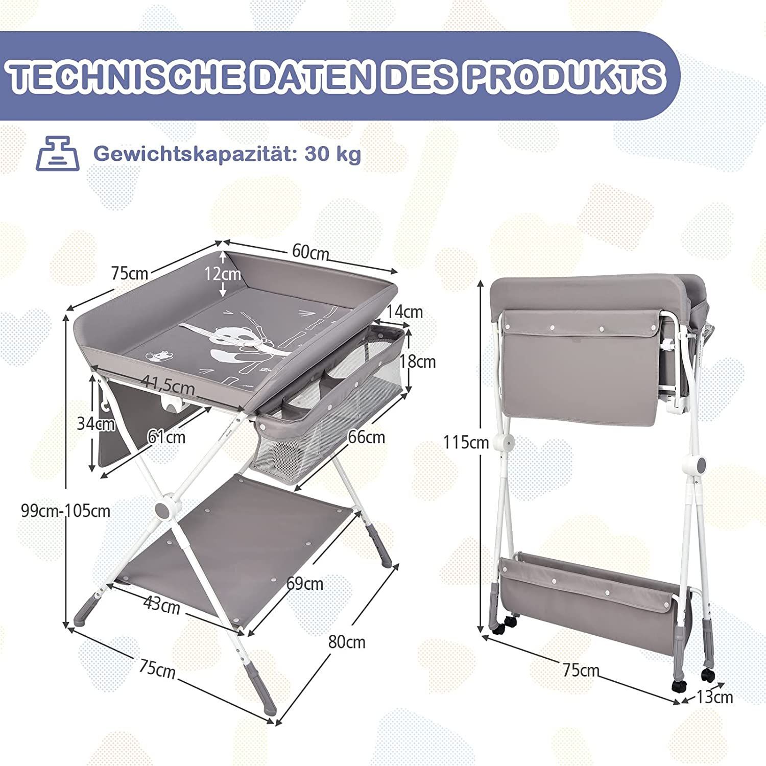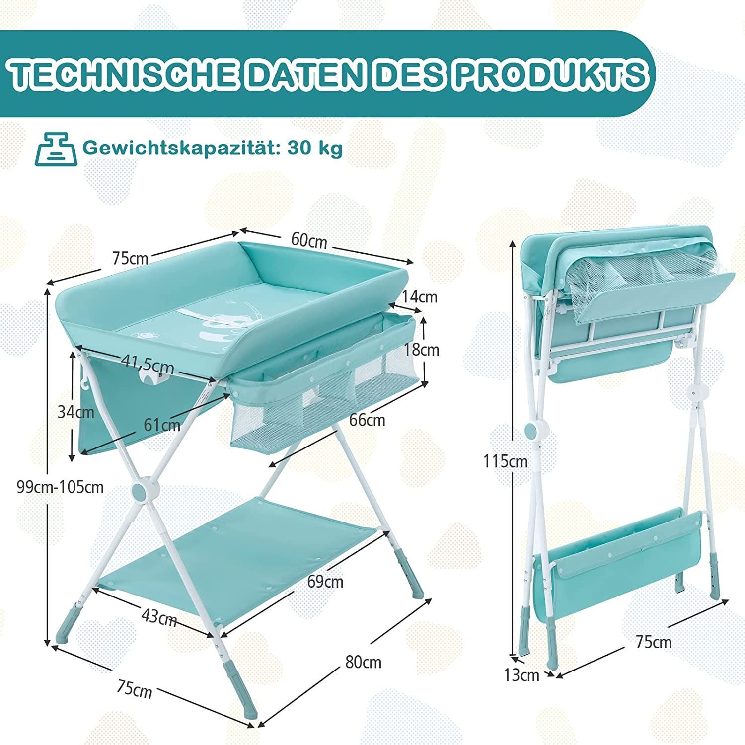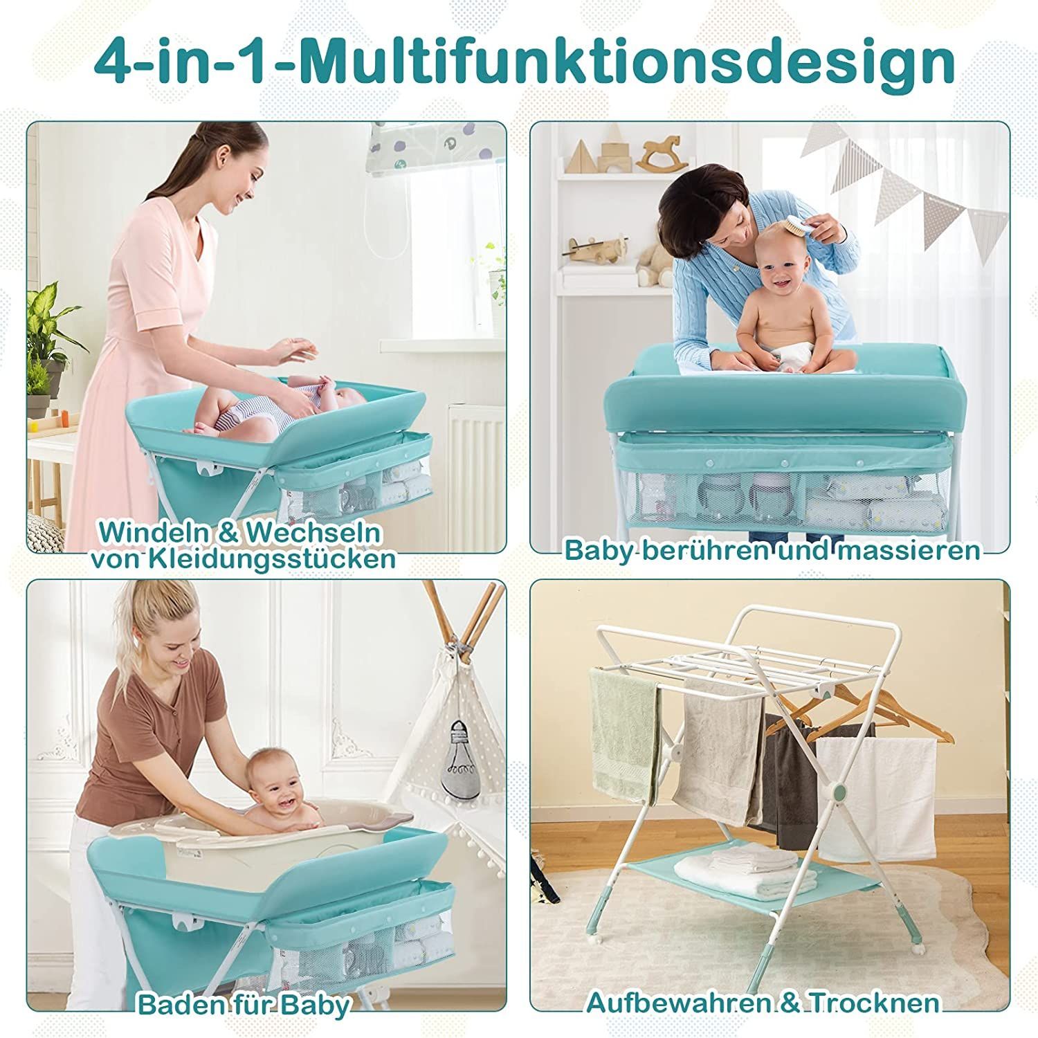 4 IN 1 klappbarer Baby Wickeltisch & Badestation & Schuhregal & Wäscheständer