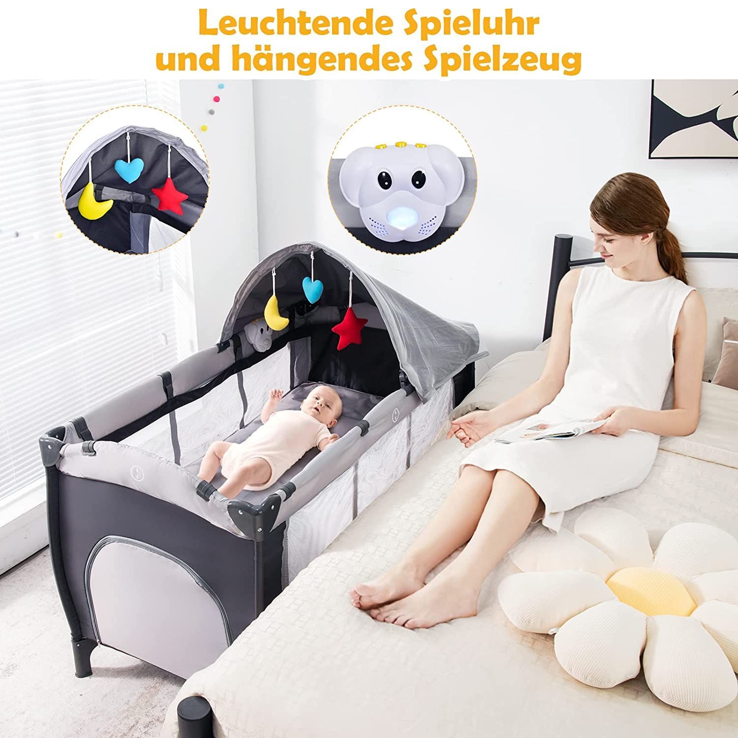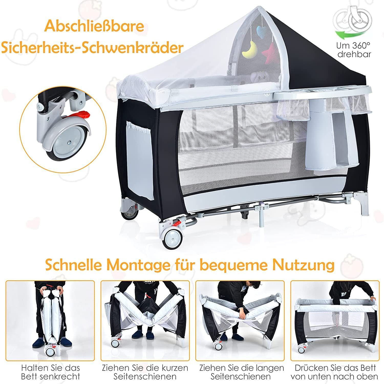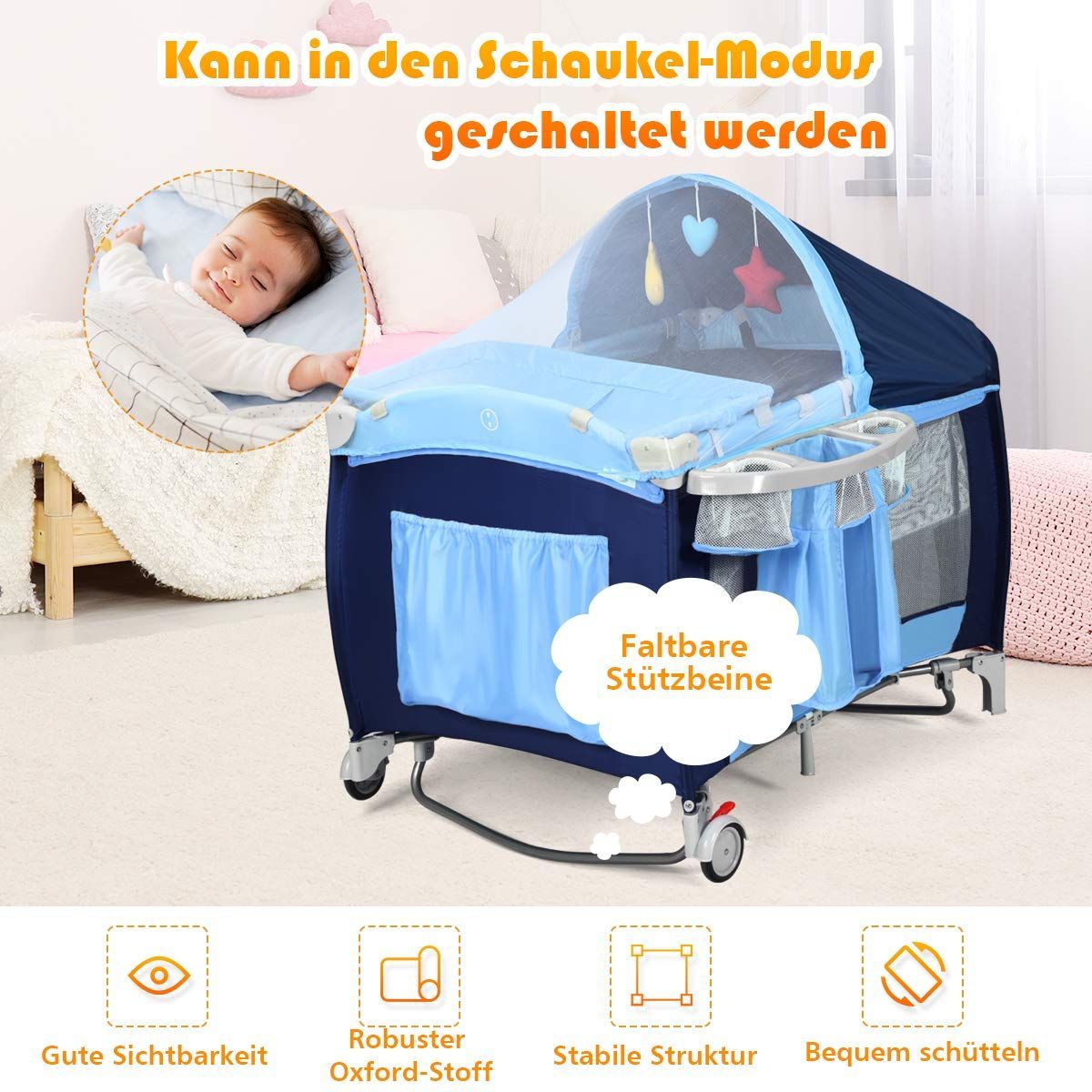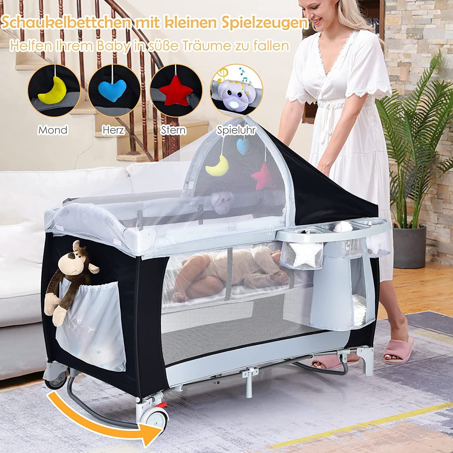 4 in 1 klappbares Reisebett & Babywiege & Wickeltisch& Laufstall mit Schaukelfunktion