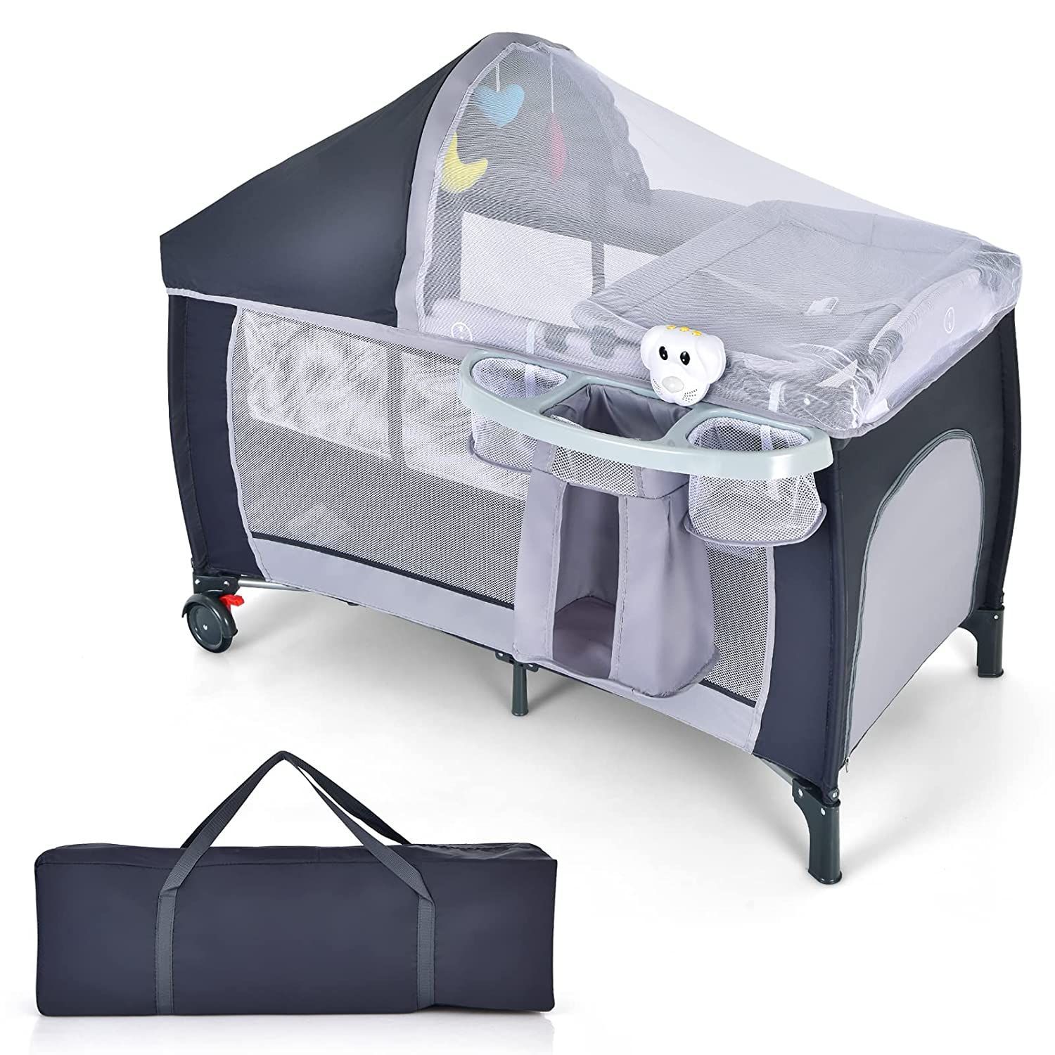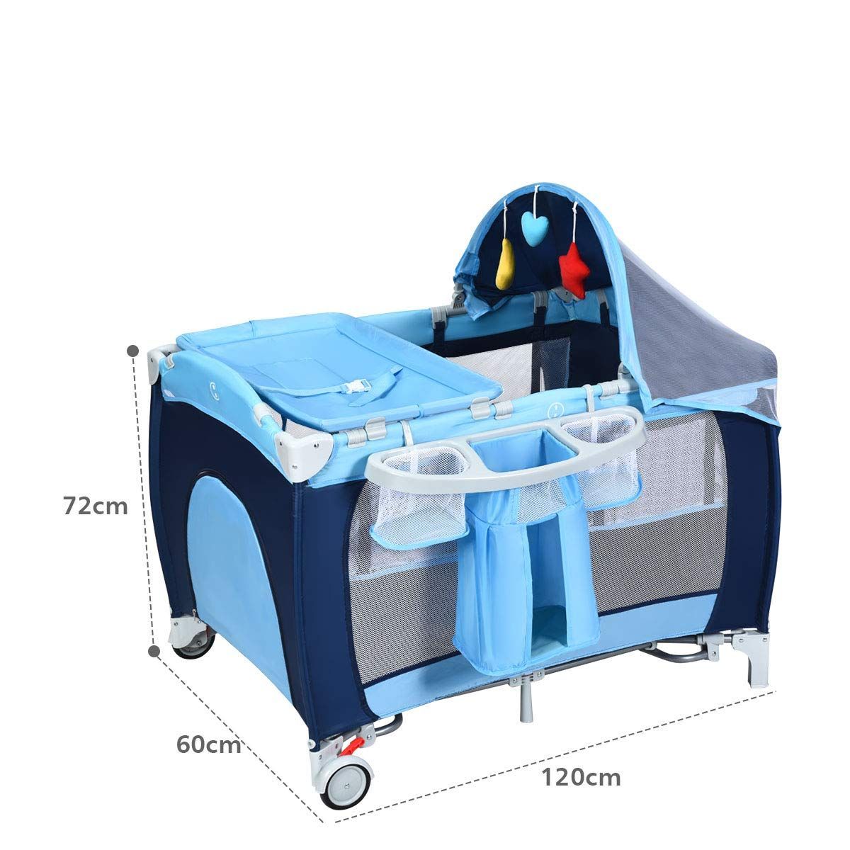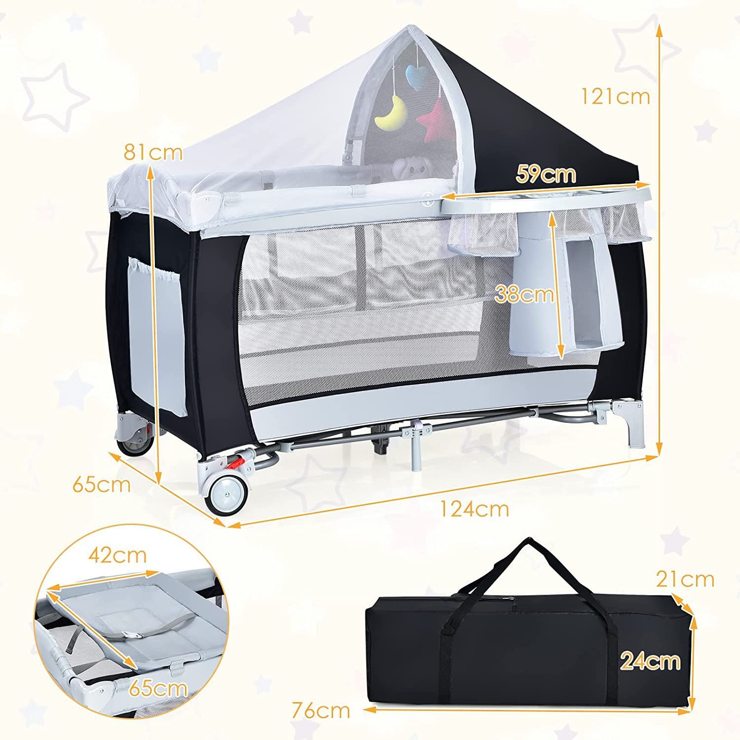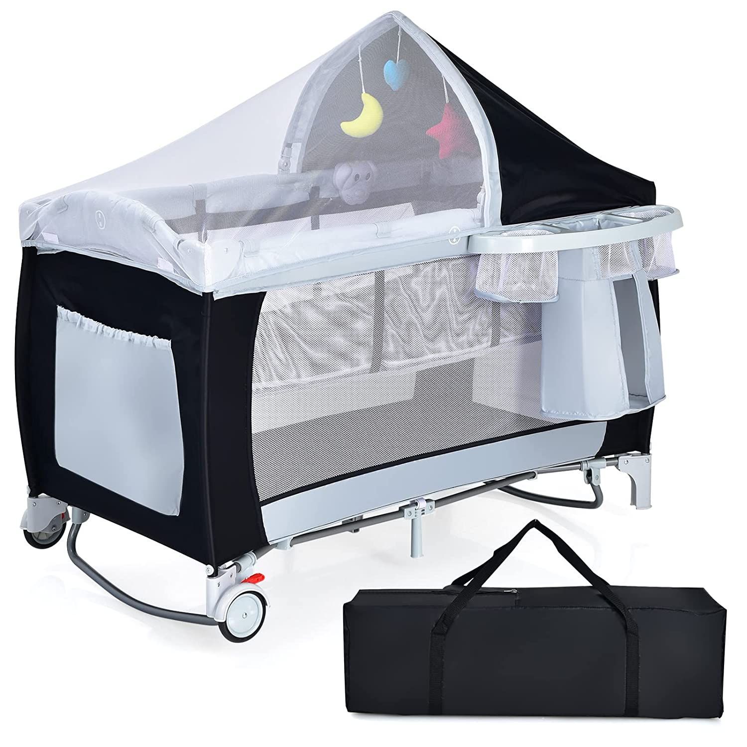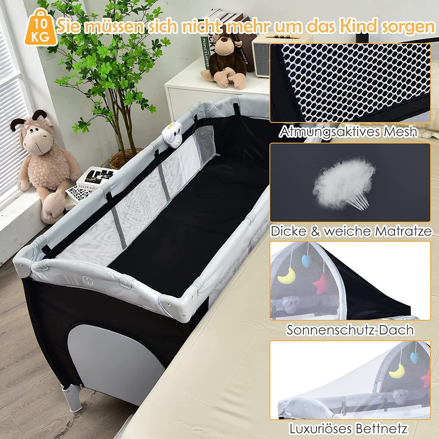 4 in 1 klappbares Reisebett & Babywiege & Wickeltisch& Laufstall mit Schaukelfunktion