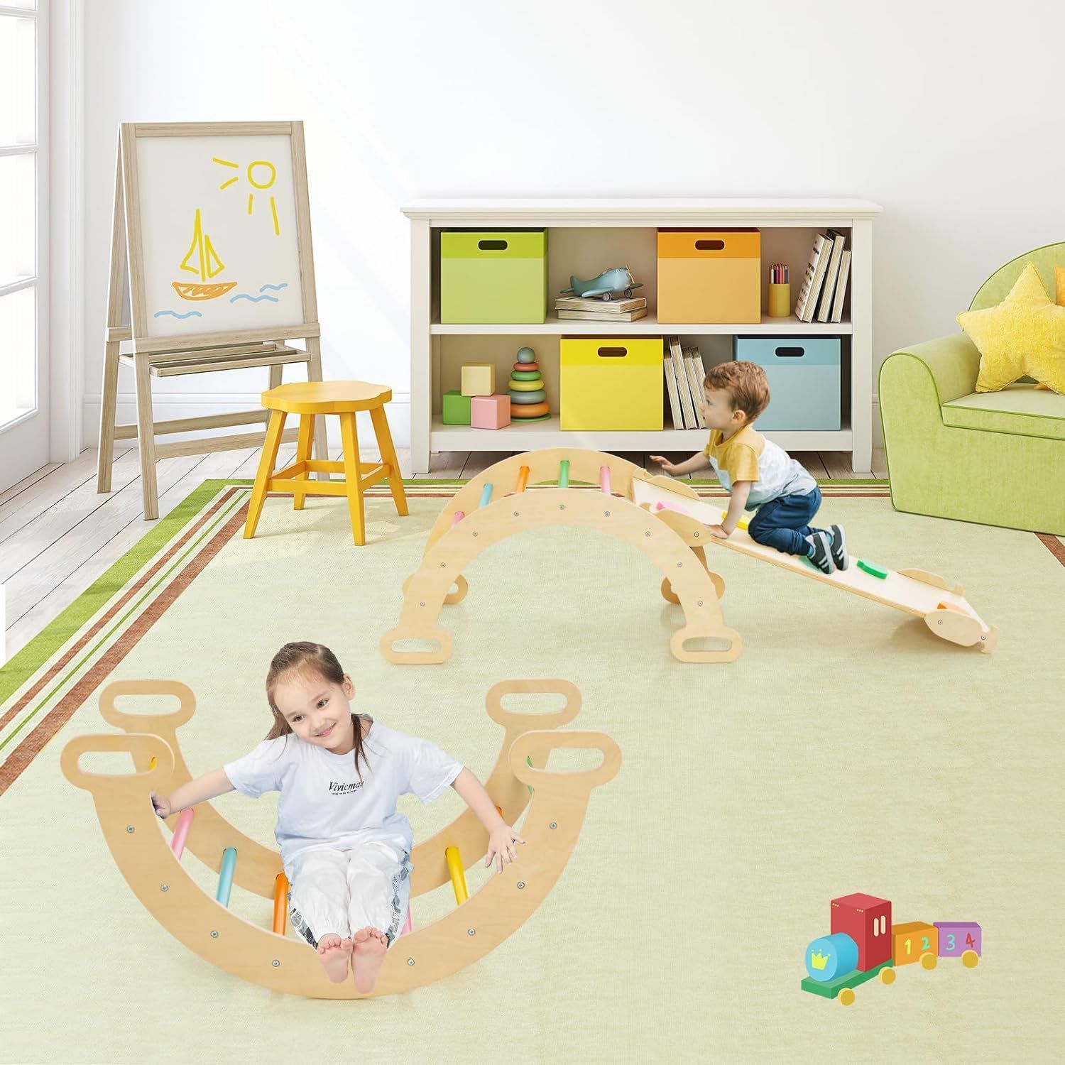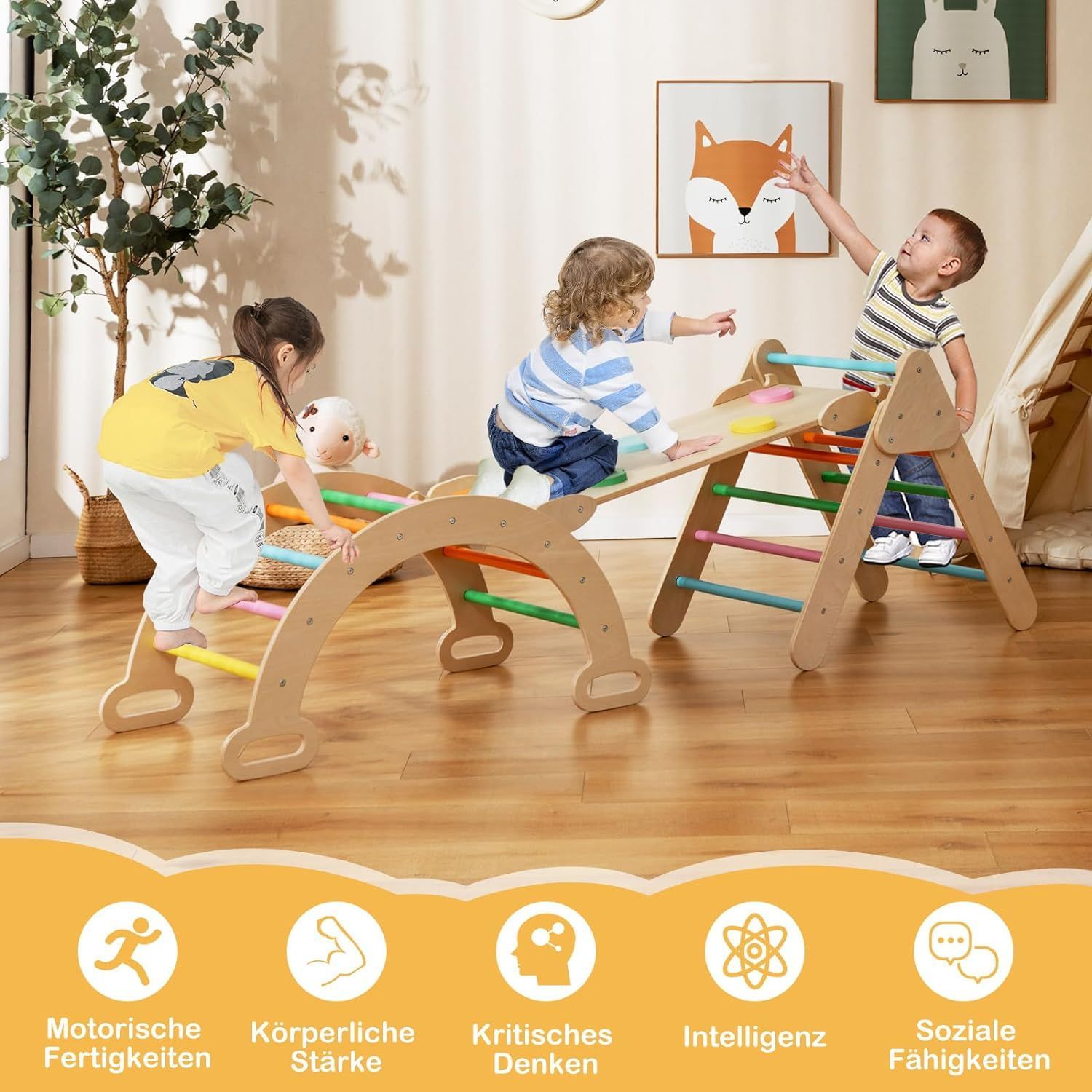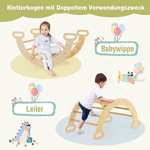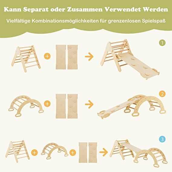 4 in 1 Kletterdreieck & Kletterbogen & Leiter & Rutsche, Klettergerüst mit Rampe