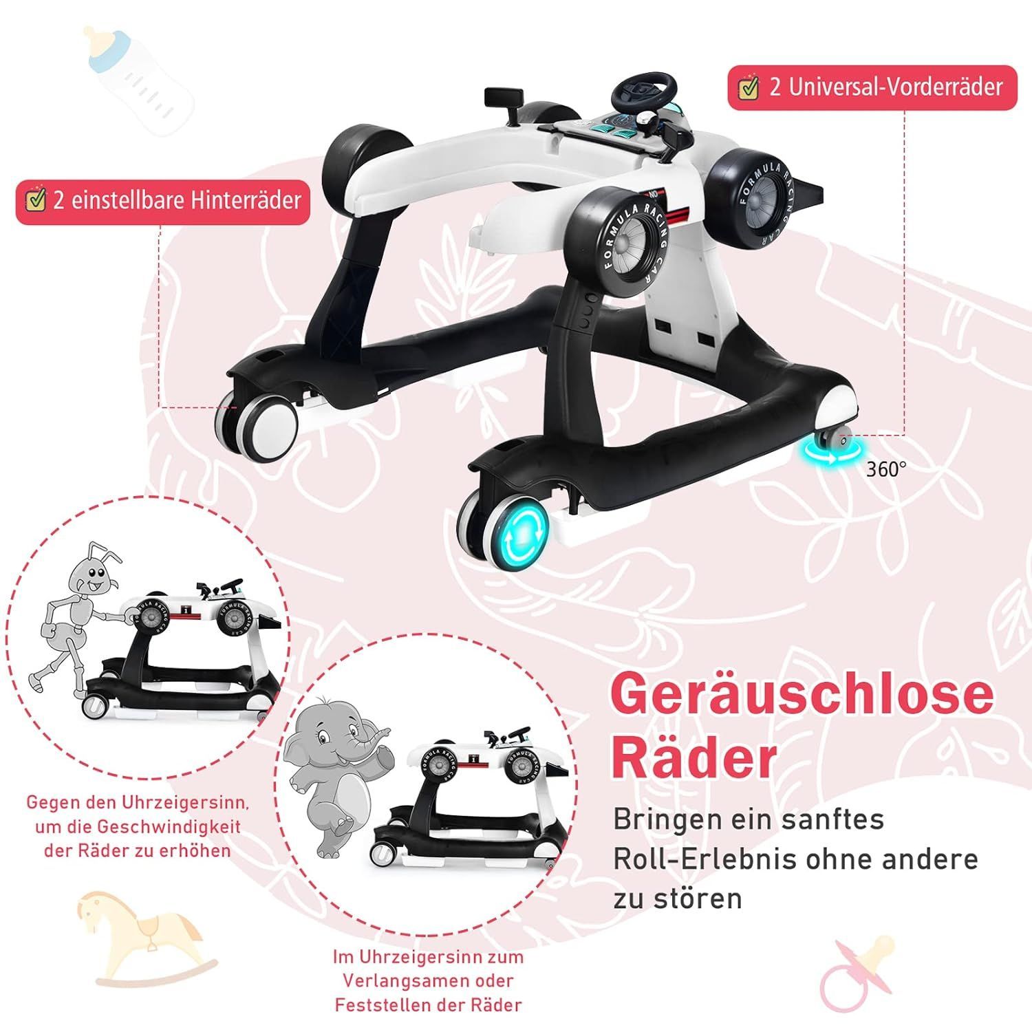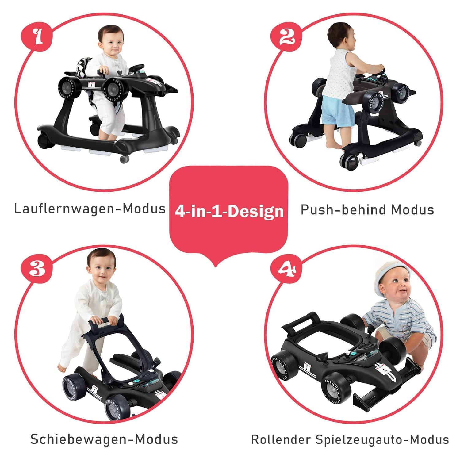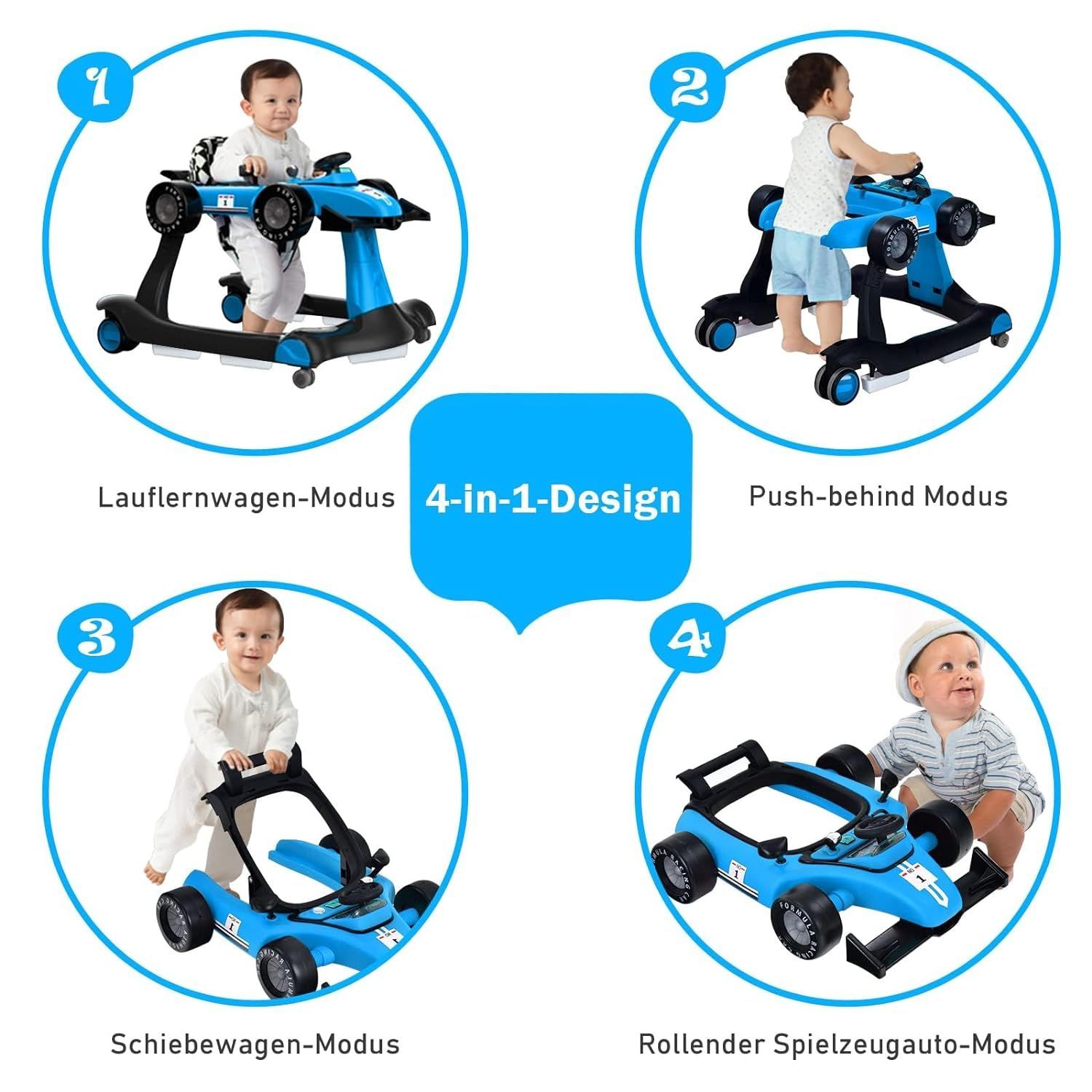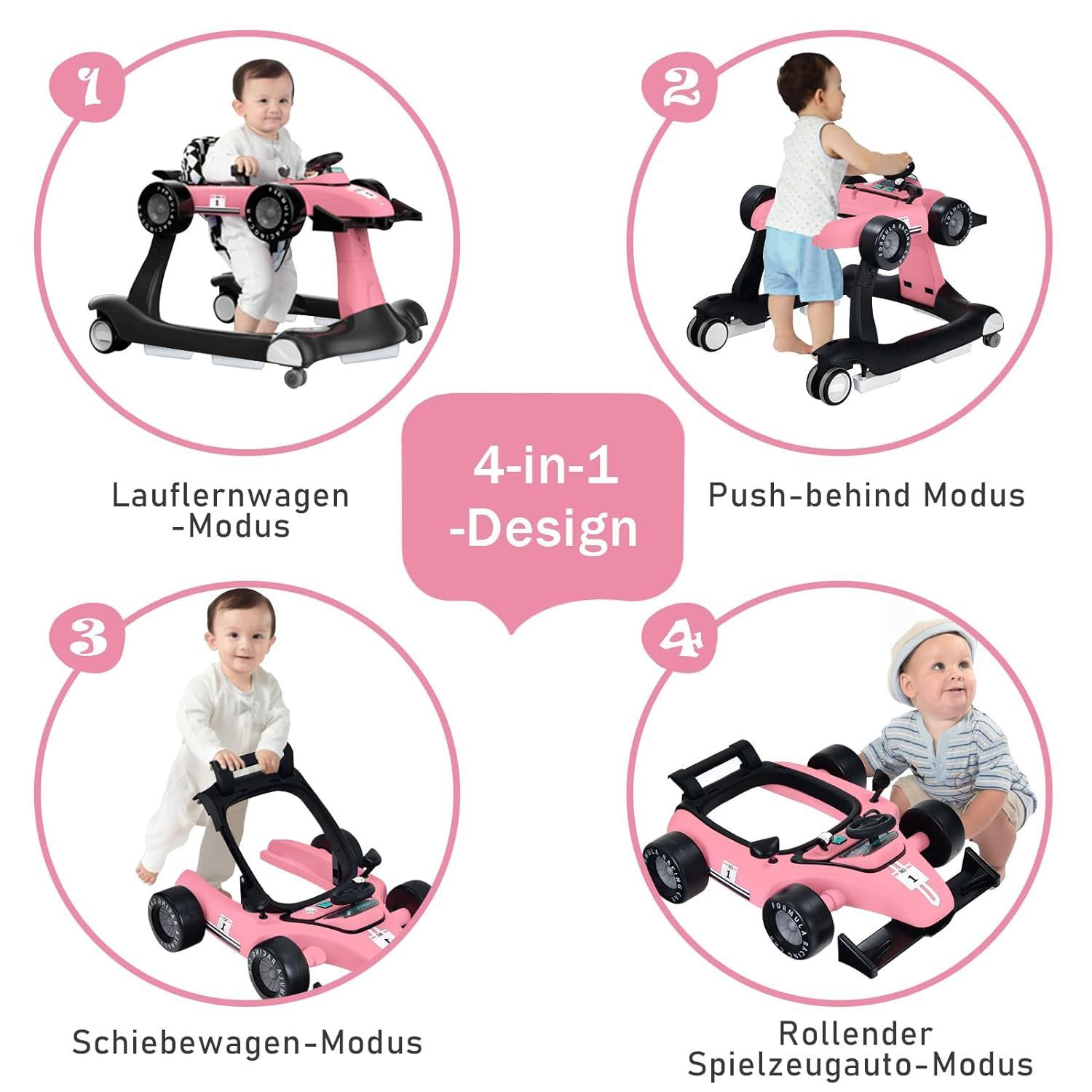 4 in 1 Lauflernwagen mit einstellbarer Höhe & Geschwindigkeit, Babykart, Baby Walker