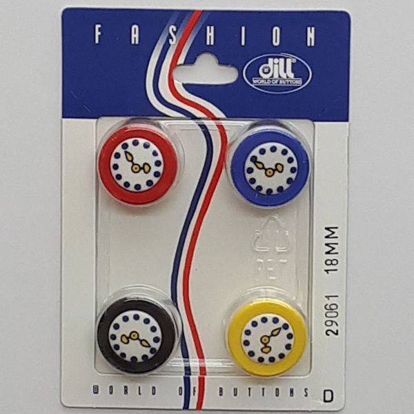 4 Kinder-Knöpfe "Uhr" - 18 mm