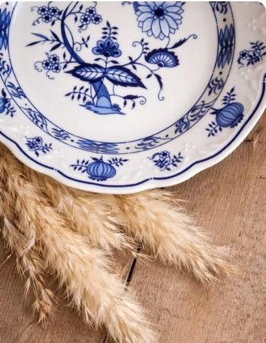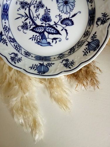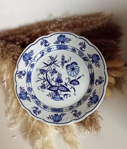 4 Kuchenteller Kahla DDR - Zwiebelmuster blau - Ø ca. 18,7 cm - grüner Bodenstempel