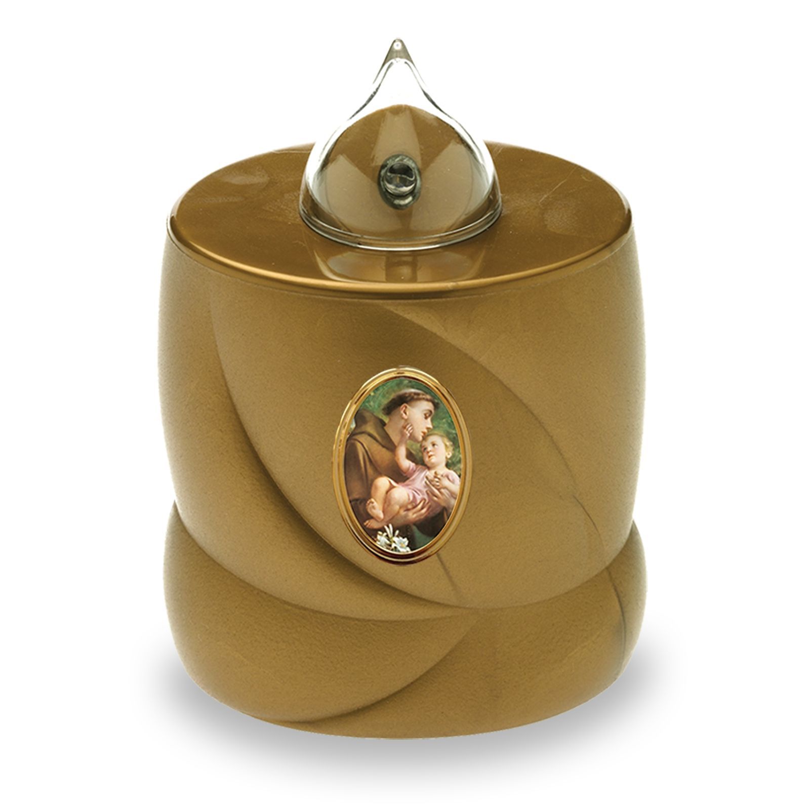 4 LED Grabkerzen Flackereffekt lange Brenndauer Trauerlicht gold Heiliger Antonius