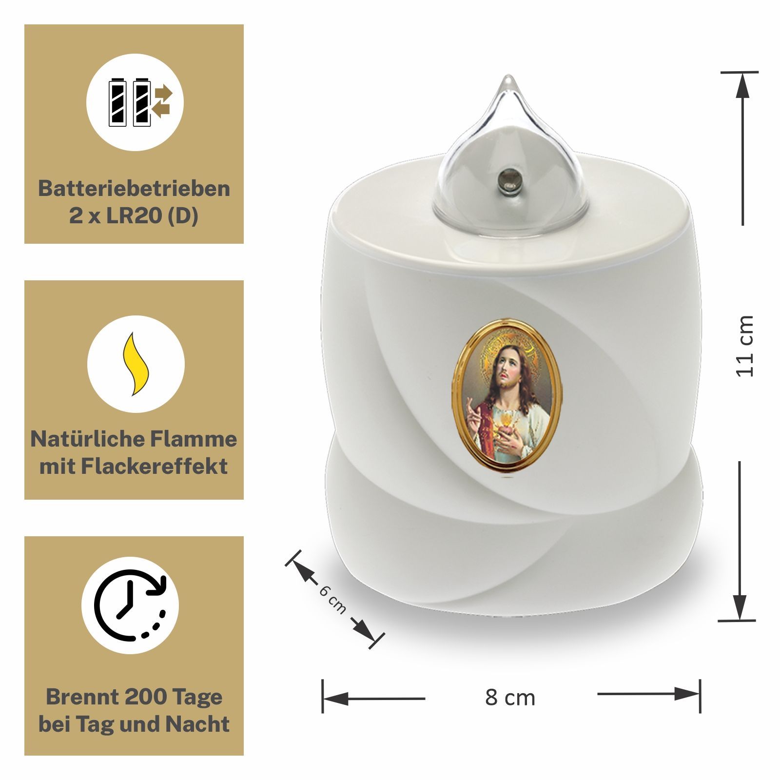 4 LED Grabkerzen Flackereffekt lange Brenndauer Trauerlicht weiß Jesus