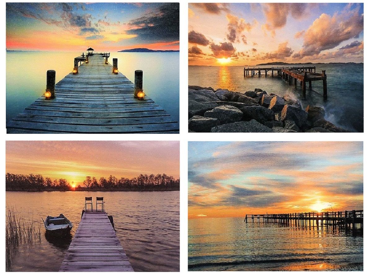 4 LED Wandbilder Steg am See Bilder beleuchtet je 20 cm x 15 cm