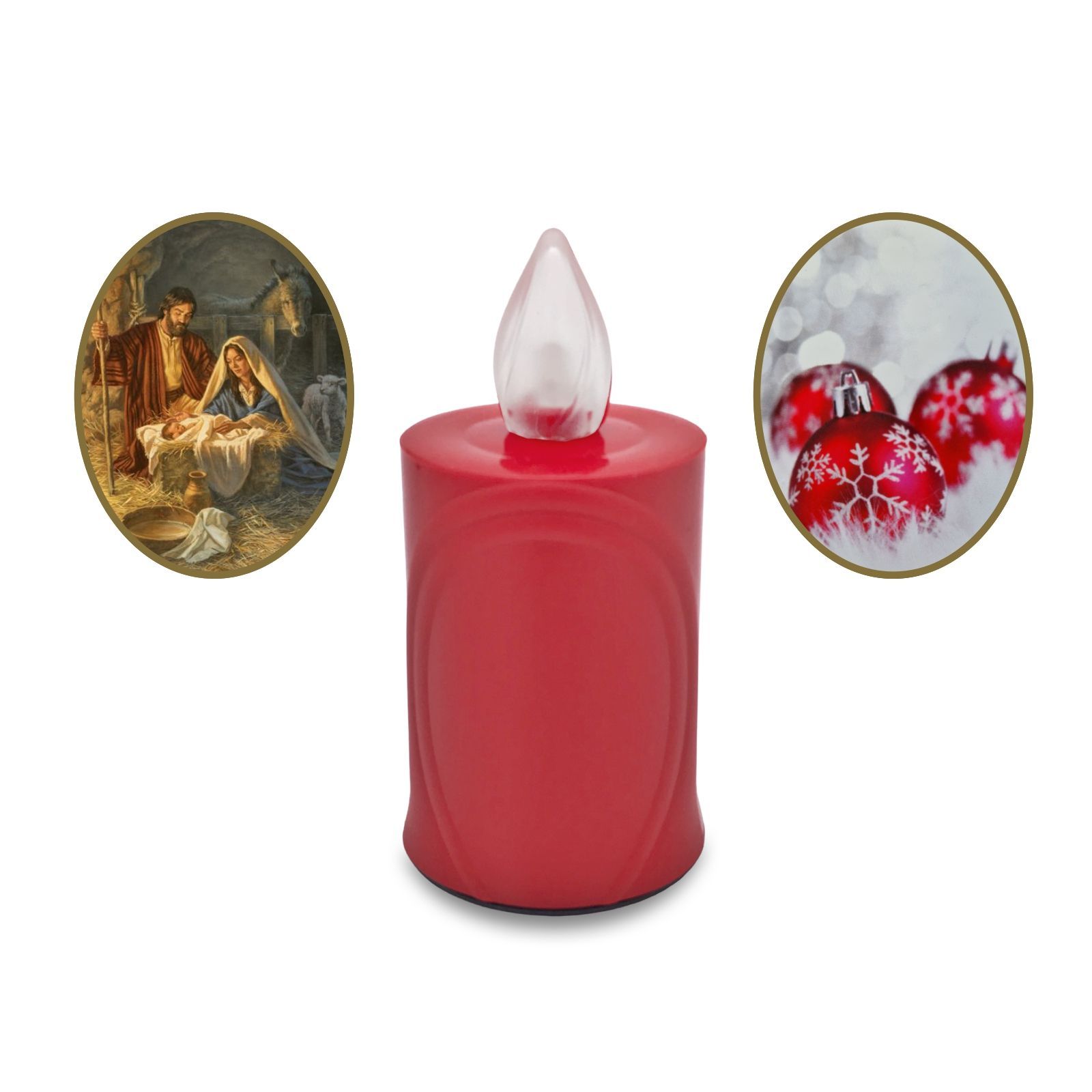 4 LED Weihnachtskerze Flackereffekt lange Brenndauer rot mit Weihnachtsmotiv
